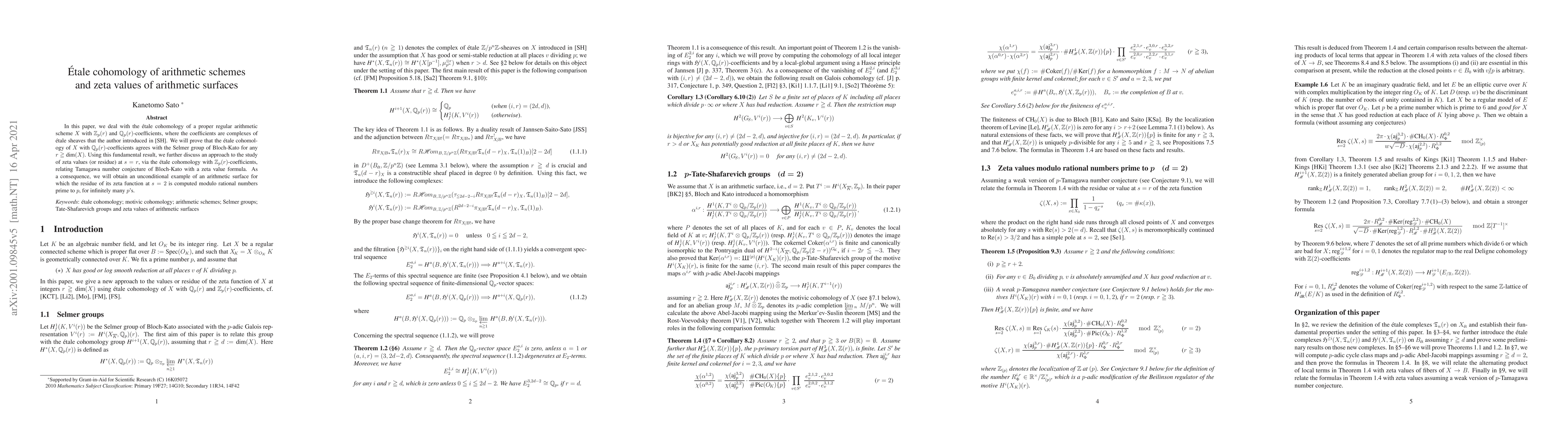 This paper explores the computation of zeta values for proper arithmetic schemes at integers greater than or equal to the dimension of the scheme using \'etale cohomology with Q_p(r) and Z_p(r) coefficients. The approach leverages \'etale cohomology to derive these zeta values.
