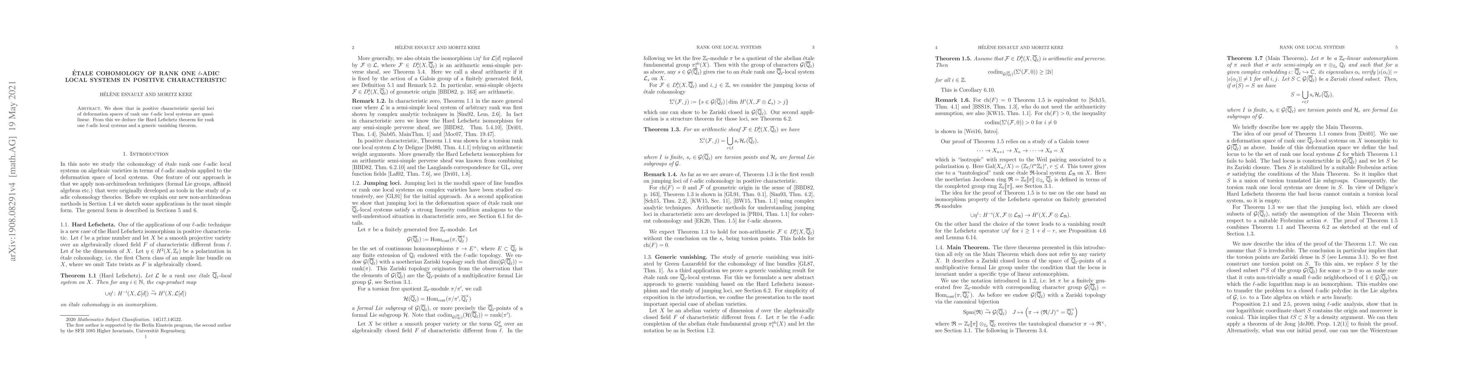 Summary: This paper demonstrates that special loci of deformation spaces for rank one $\ell$-adic local systems in positive characteristic are quasilinear. It further establishes the Hard Lefschetz theorem and a generic vanishing theorem for these systems.