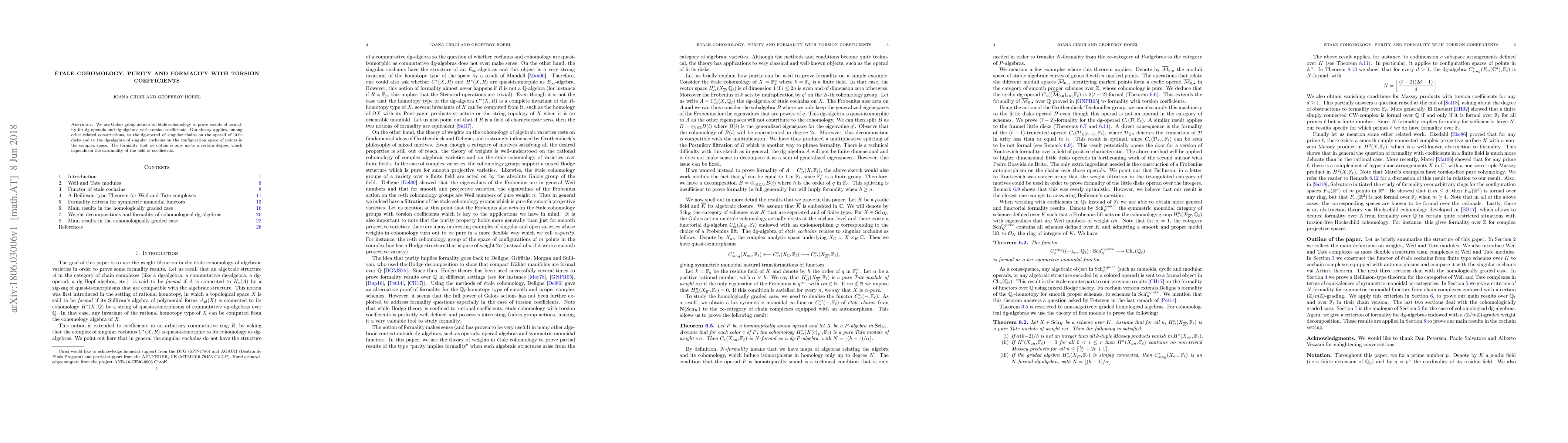 This paper utilizes Galois group actions on \'etale cohomology to establish formality results for dg-operads and dg-algebras with torsion coefficients. The approach applies to the dg-operad of singular chains on the operad of little disks and the dg-algebra of singular cochains on configuration spaces, with formality degree contingent on the cardinality of the coefficient field.