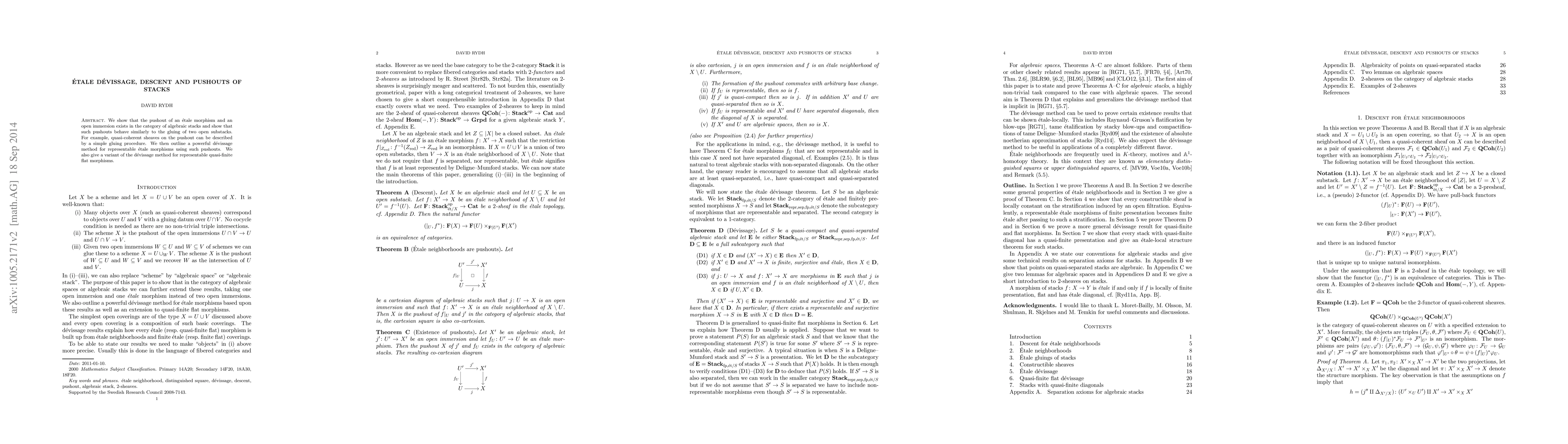 This paper demonstrates the existence and behavior of pushouts in the category of algebraic stacks via \'etale morphisms and open immersions, akin to gluing open substacks. It introduces a d\'evissage method for representable \'etale morphisms and extends this technique for quasi-finite flat morphisms.