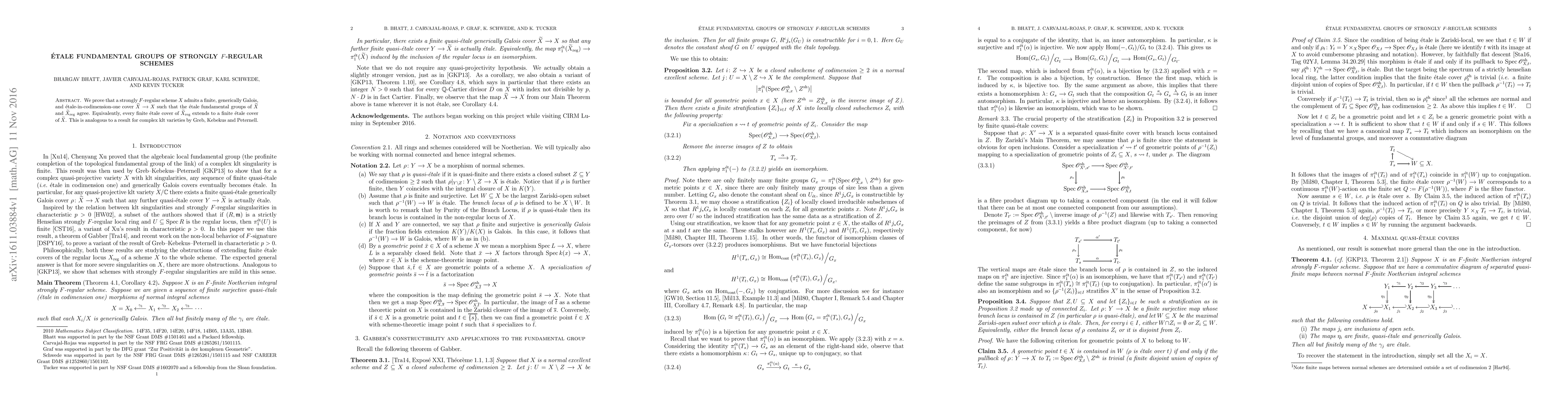 This paper proves that strongly $F$-regular schemes $X$ have a finite, generically Galois, \'etale-in-codimension-one cover $\widetilde X \to X$ where the \'etale fundamental groups of $\widetilde X$ and its regular part $\widetilde X_{reg}$ coincide. This result parallels a known analogous result for complex klt varieties.