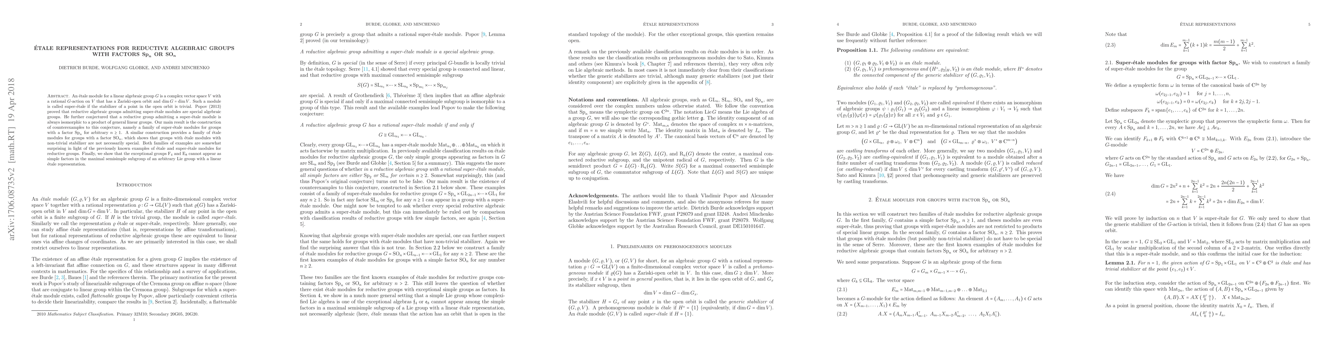 A complex vector space $V$ is an \'etale $G$-module if $G$ acts rationally on $V$ with a Zariski-open orbit and $\dim G=\dim V$. Such a module is called super-\'etale if the stabilizer of a point in the open orbit is trivial. Popov proved that reductive algebraic groups admitting super-\'etale modules are special algebraic groups. He further conjectured that a reductive group admitting a super-\'etale module is always isomorphic to a product of general linear groups. In light of previously available examples, one can conjecture more generally that in such a group all simple factors are either $SL_n$ for some $n$ or $Sp_2$. We show that this is not the case by constructing a family of super-\'etale modules for groups with a factor $Sp_n$ for arbitrary $n\geq1$. A similar construction provides a family of \'etale modules for groups with a factor $SO_n$, which shows that groups with \'etale modules with non-trivial stabilizer are not necessarily special. Both families of examples are somewhat surprising in light of the previously known examples of \'etale and super-\'etale modules for reductive groups. Finally, we show that the exceptional groups $F_4$ and $E_8$ cannot appear as simple factors in the maximal semisimple subgroup of an arbitrary Lie group with a linear \'etale representation.