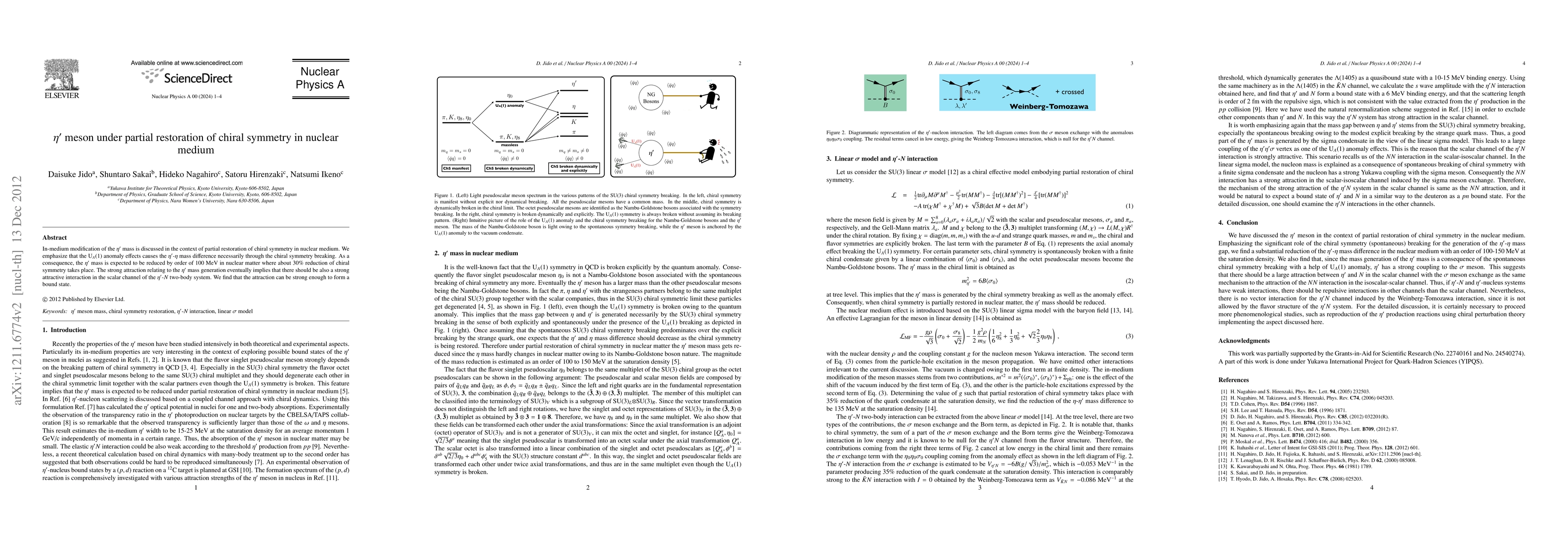 This paper investigates the in-medium mass modification of the $\eta^\prime$ meson due to partial restoration of chiral symmetry in nuclear medium, predicting a reduction of its mass by about 100 MeV. It suggests a strong attractive interaction in the $\eta^\prime$-N two-body system, potentially leading to the formation of a bound state.