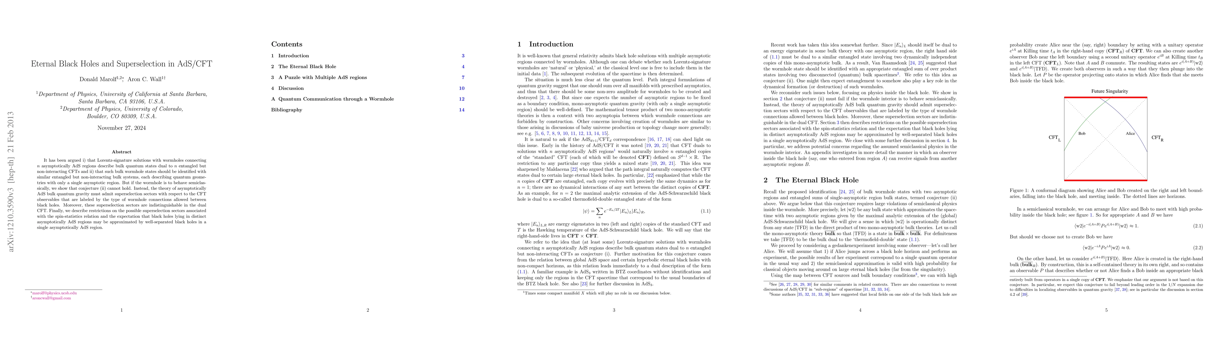 It has been argued i) that Lorentz-signature solutions with wormholes connecting n asymptotically AdS regions describe bulk quantum states dual to n entangled but non-interacting CFTs and ii) that such bulk wormhole states should be identified with similar entangled but non-interacting bulk systems, each describing quantum geometries with only a single asymptotic region. But if the wormhole is to behave semiclassically, we show that conjecture (ii) cannot hold. Instead, the theory of asymptotically AdS bulk quantum gravity must admit superselection sectors with respect to the CFT observables that are labeled by the type of wormhole connections allowed between black holes. Moreover, these superselection sectors are indistinguishable in the dual CFT. Finally, we describe restrictions on the possible superselection sectors associated with the spin-statistics relation and the expectation that black holes lying in distinct asymptotically AdS regions may be approximated by well-separated black holes in a single asymptotically AdS region.