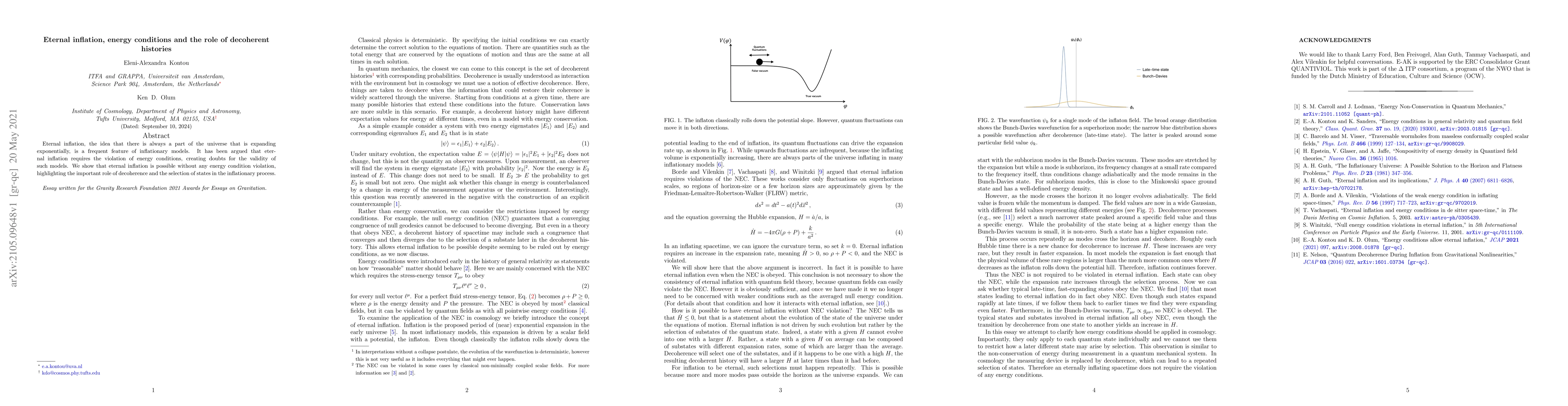 This paper demonstrates that eternal inflation can occur without violating energy conditions, emphasizing the significance of decoherence and the selection of states in the inflationary process. It challenges previous doubts about the validity of inflationary models due to potential energy condition violations.