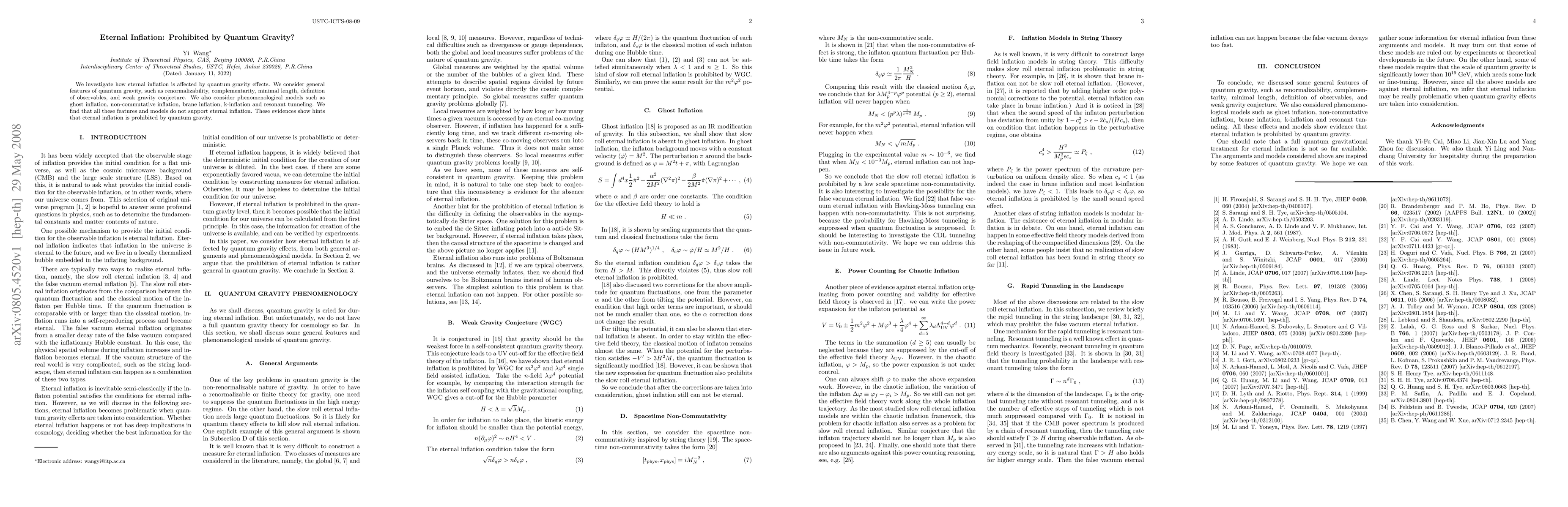 This research investigates whether quantum gravity effects hinder eternal inflation and concludes that features like renormalizability, complementarity, and models such as ghost and brane inflation suggest eternal inflation is likely prohibited by quantum gravity.