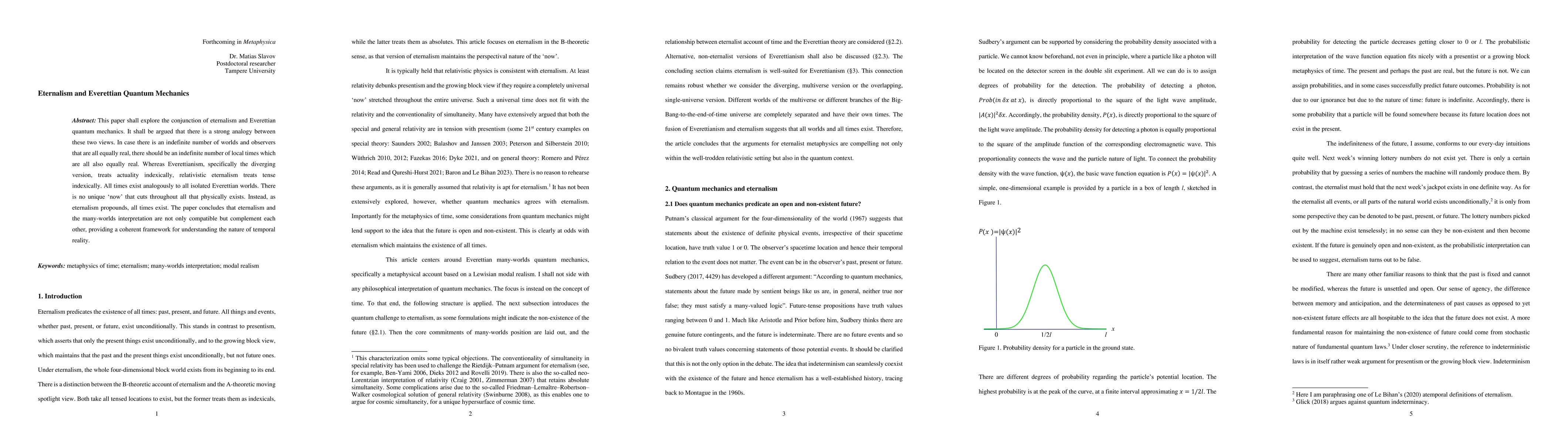 This work stands out by identifying and articulating the previously unnoticed parallels between the indexical treatment of actuality in Everettianism and the relativistic, indexical treatment of tense in eternalism.