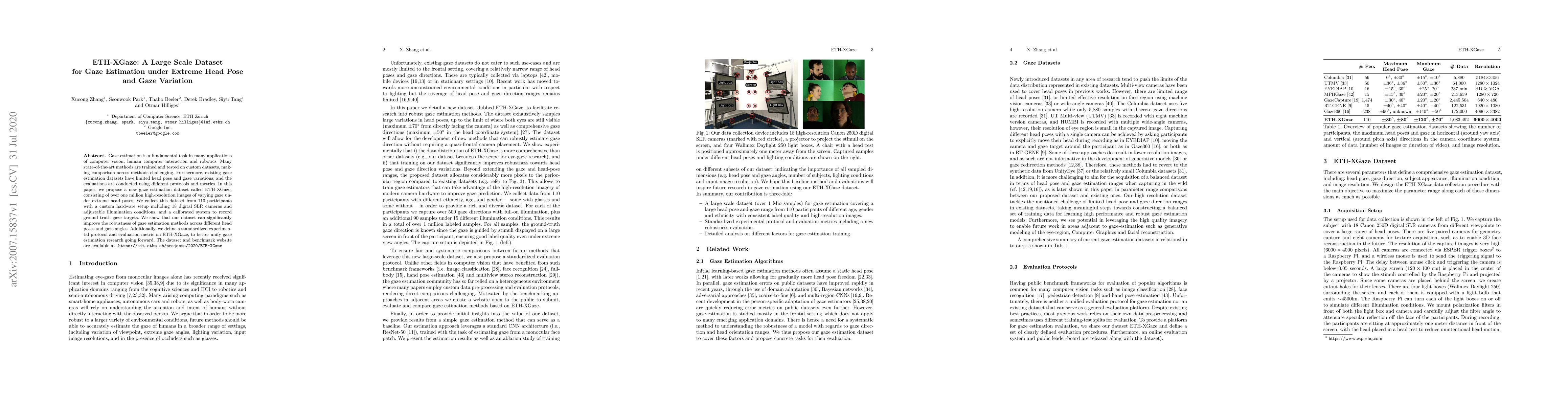 ETH-XGaze is a large-scale dataset for gaze estimation featuring over one million images, capturing extreme head poses and gaze variations from 110 participants. It aims to improve the robustness of gaze estimation methods and includes a standardized evaluation protocol.