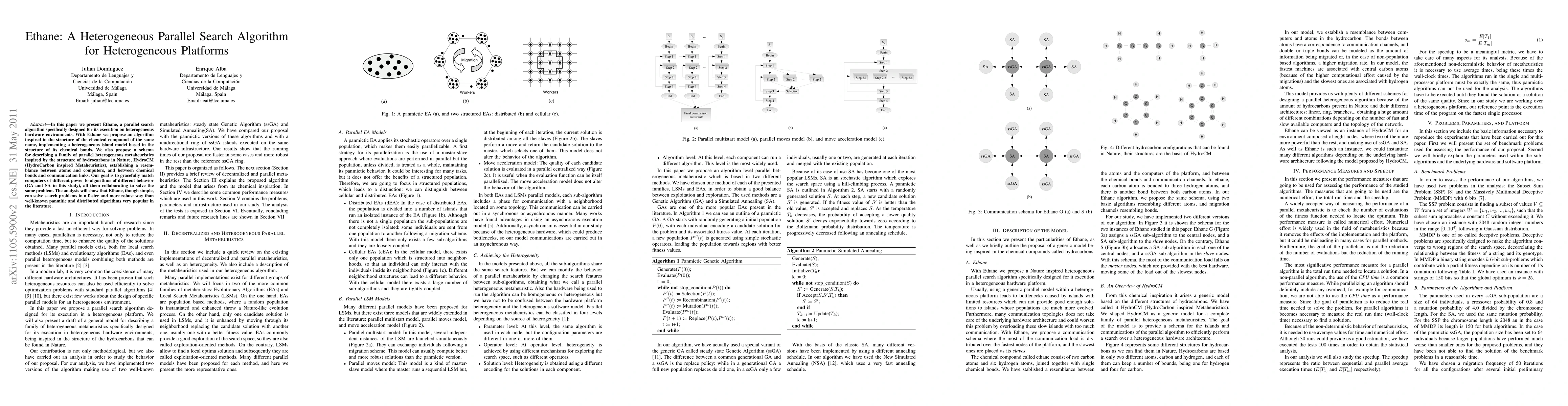 In this paper we present Ethane, a parallel search algorithm specifically designed for its execution on heterogeneous hardware environments. With Ethane we propose an algorithm inspired in the structure of the chemical compound of the same name, implementing a heterogeneous island model based in the structure of its chemical bonds. We also propose a schema for describing a family of parallel heterogeneous metaheuristics inspired by the structure of hydrocarbons in Nature, HydroCM (HydroCarbon inspired Metaheuristics), establishing a resem- blance between atoms and computers, and between chemical bonds and communication links. Our goal is to gracefully match computers of different power to algorithms of different behavior (GA and SA in this study), all them collaborating to solve the same problem. The analysis will show that Ethane, though simple, can solve search problems in a faster and more robust way than well-known panmitic and distributed algorithms very popular in the literature.