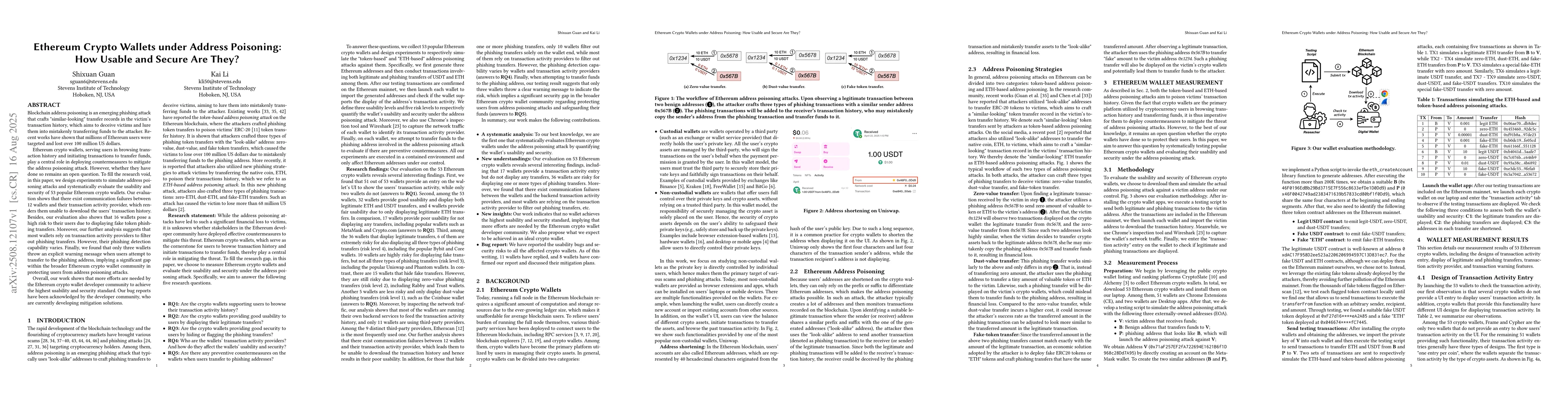 Blockchain address poisoning is an emerging phishing attack that crafts "similar-looking" transfer records in the victim's transaction history, which aims to deceive victims and lure them into mistakenly transferring funds to the attacker. Recent works have shown that millions of Ethereum users were targeted and lost over 100 million US dollars. Ethereum crypto wallets, serving users in browsing transaction history and initiating transactions to transfer funds, play a central role in deploying countermeasures to mitigate the address poisoning attack. However, whether they have done so remains an open question. To fill the research void, in this paper, we design experiments to simulate address poisoning attacks and systematically evaluate the usability and security of 53 popular Ethereum crypto wallets. Our evaluation shows that there exist communication failures between 12 wallets and their transaction activity provider, which renders them unable to download the users' transaction history. Besides, our evaluation also shows that 16 wallets pose a high risk to their users due to displaying fake token phishing transfers. Moreover, our further analysis suggests that most wallets rely on transaction activity providers to filter out phishing transfers. However, their phishing detection capability varies. Finally, we found that only three wallets throw an explicit warning message when users attempt to transfer to the phishing address, implying a significant gap within the broader Ethereum crypto wallet community in protecting users from address poisoning attacks. Overall, our work shows that more efforts are needed by the Ethereum crypto wallet developer community to achieve the highest usability and security standard. Our bug reports have been acknowledged by the developer community, who are currently developing mitigation solutions.