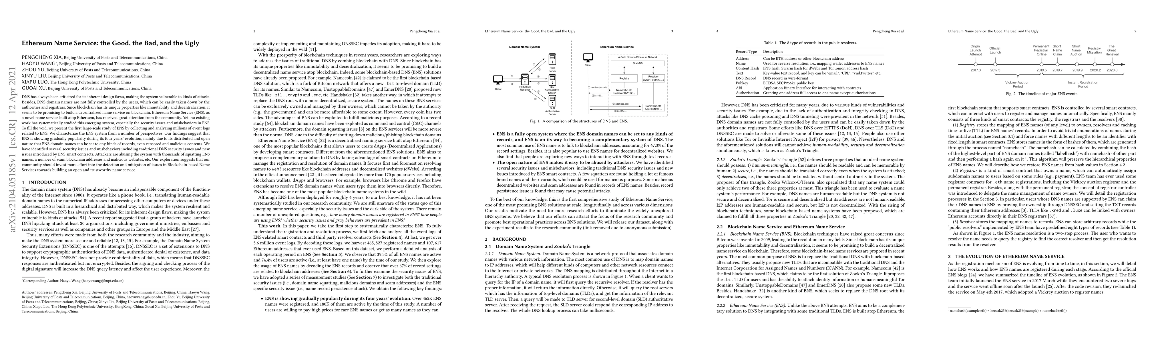 This paper conducts a comprehensive study of Ethereum Name Service (ENS), highlighting its growing popularity due to its decentralized nature. It identifies significant security issues and misbehaviors, including traditional DNS vulnerabilities and new threats from ENS smart contracts, emphasizing the need for enhanced detection and mitigation strategies in blockchain-based name services.