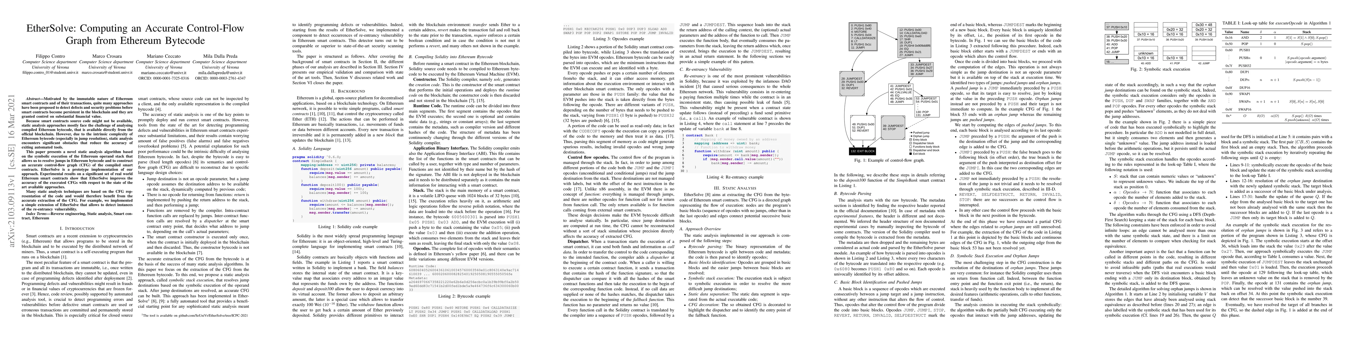 This paper introduces EtherSolve, a novel static analysis algorithm that uses symbolic execution of the Ethereum operand stack to construct an accurate control-flow graph (CFG) from Ethereum bytecode. Experimental results show that EtherSolve significantly improves CFG accuracy compared to existing methods, which can enhance the detection of security vulnerabilities like re-entrancy in smart contracts.