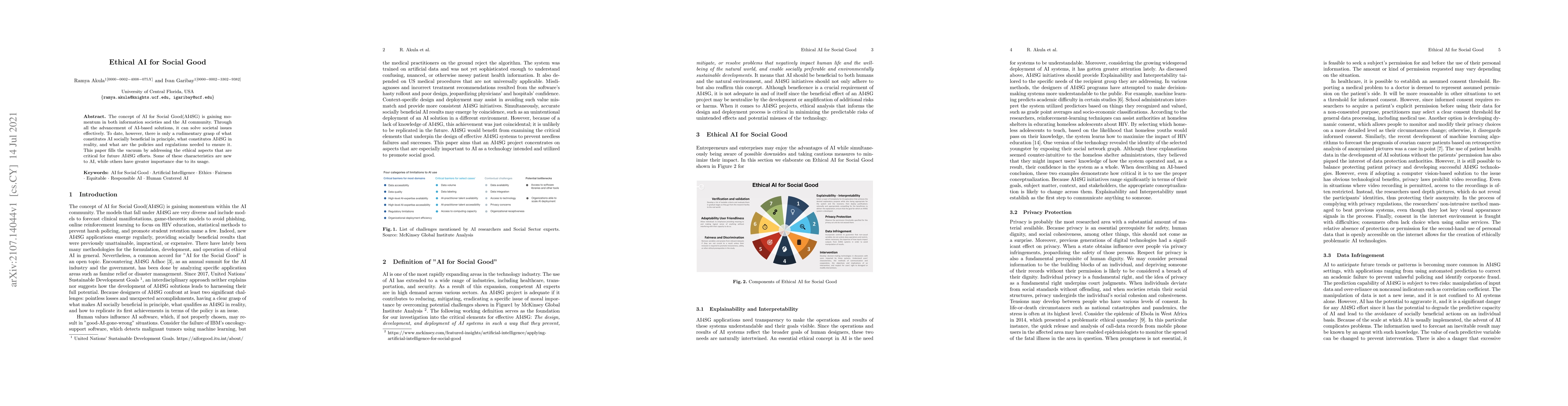 The concept of AI for Social Good(AI4SG) is gaining momentum in both information societies and the AI community. Through all the advancement of AI-based solutions, it can solve societal issues effectively. To date, however, there is only a rudimentary grasp of what constitutes AI socially beneficial in principle, what constitutes AI4SG in reality, and what are the policies and regulations needed to ensure it. This paper fills the vacuum by addressing the ethical aspects that are critical for future AI4SG efforts. Some of these characteristics are new to AI, while others have greater importance due to its usage.