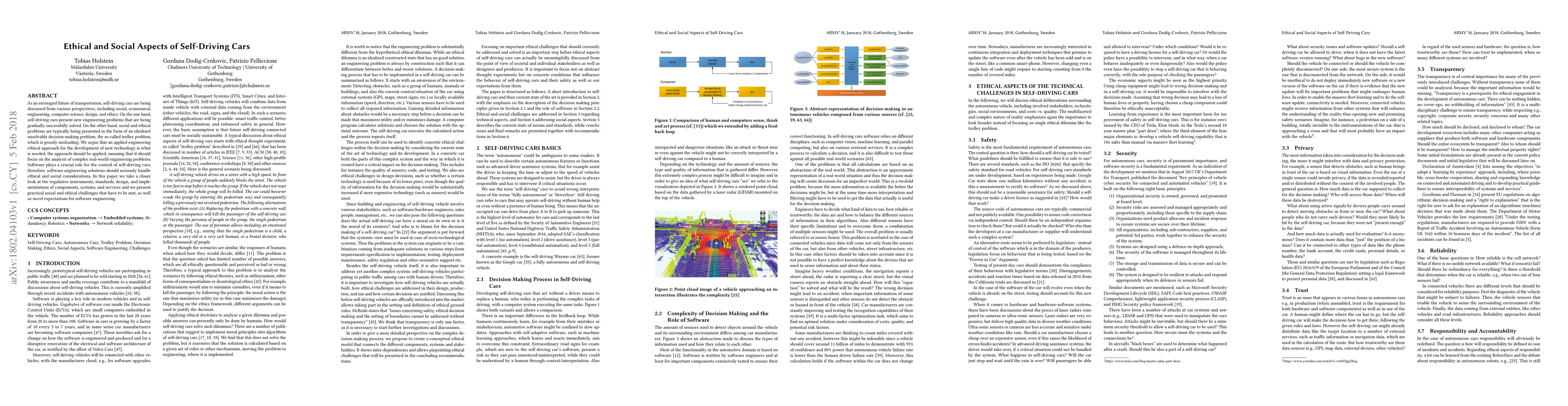 This paper discusses the ethical and social implications of self-driving cars, arguing that while engineering challenges are being met, ethical dilemmas like the trolley problem are misleading. It emphasizes the need for an applied engineering ethical approach focusing on real-world problems and highlights the crucial role of software engineering in addressing these challenges.