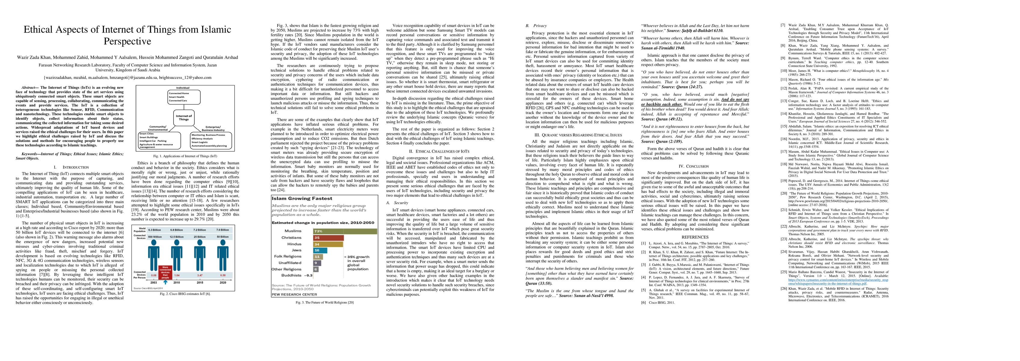 This paper explores the ethical challenges posed by the Internet of Things (IoT) and proposes solutions aligned with Islamic teachings to promote responsible usage of these technologies. It emphasizes the importance of adhering to ethical guidelines in the widespread adoption of IoT devices and services.