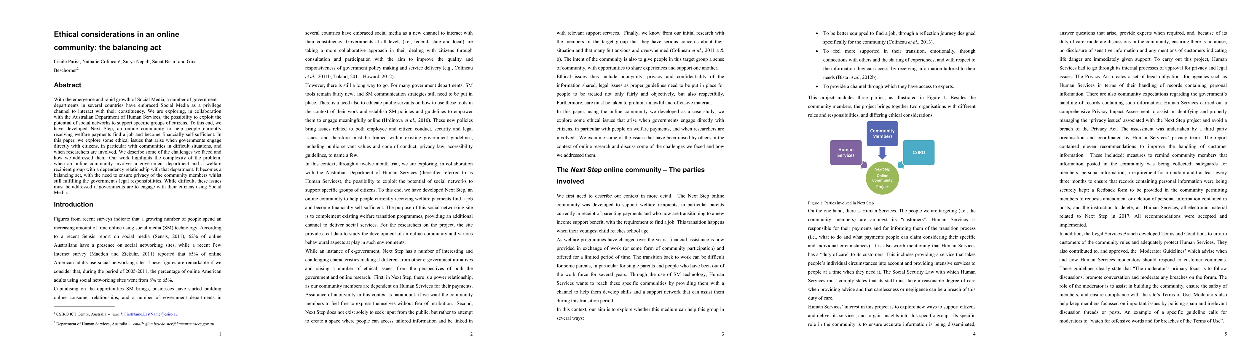 The research methodology involved the development and analysis of Next Step, an online community created by CSIRO in collaboration with the Australian Department of Human Services to support welfare recipients in finding employment.