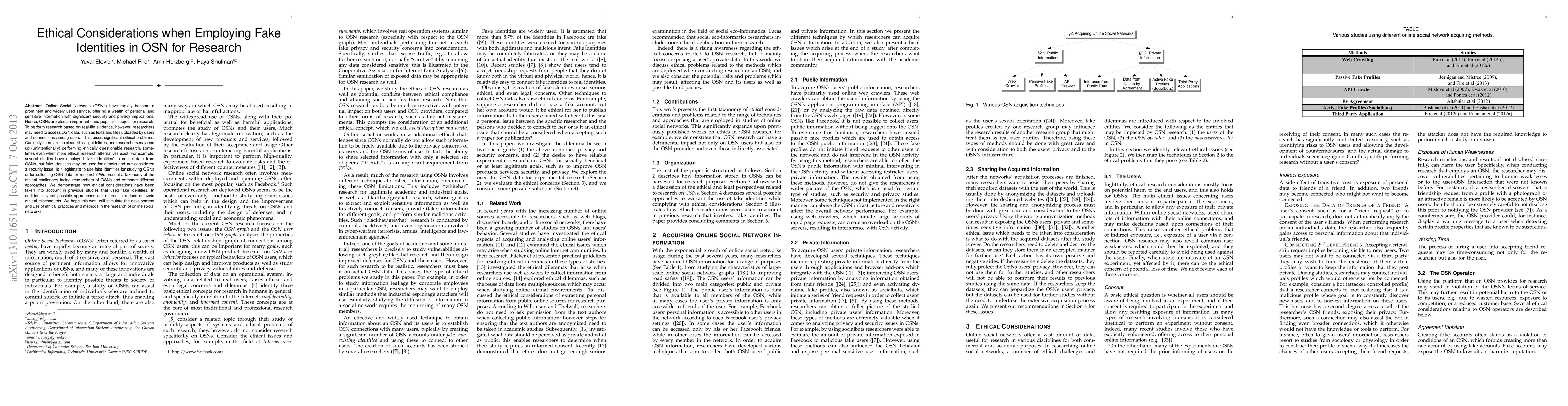 This paper examines the ethical dilemmas surrounding the use of fake identities in online social network (OSN) research, proposing a taxonomy of ethical challenges and comparing different approaches. It aims to stimulate the development of ethical practices in OSN research by analyzing past studies and suggesting methods to mitigate ethical misconduct.