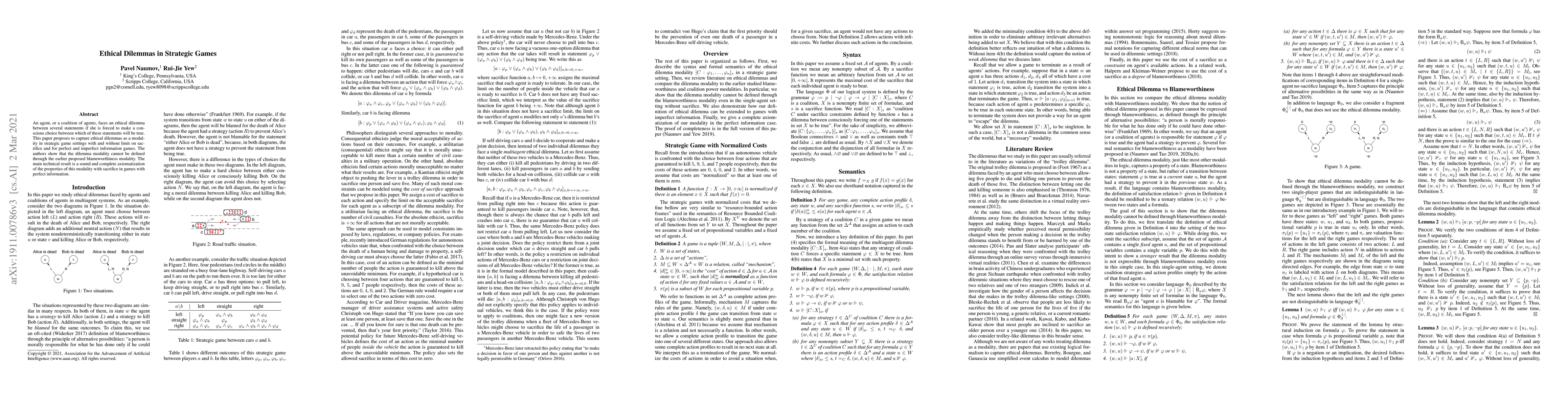 This paper explores ethical dilemmas in strategic games, proposing a new modality to represent these dilemmas, especially in perfect information settings. It demonstrates that this dilemma modality differs from existing blameworthiness modality and provides a sound and complete axiomatization for it.