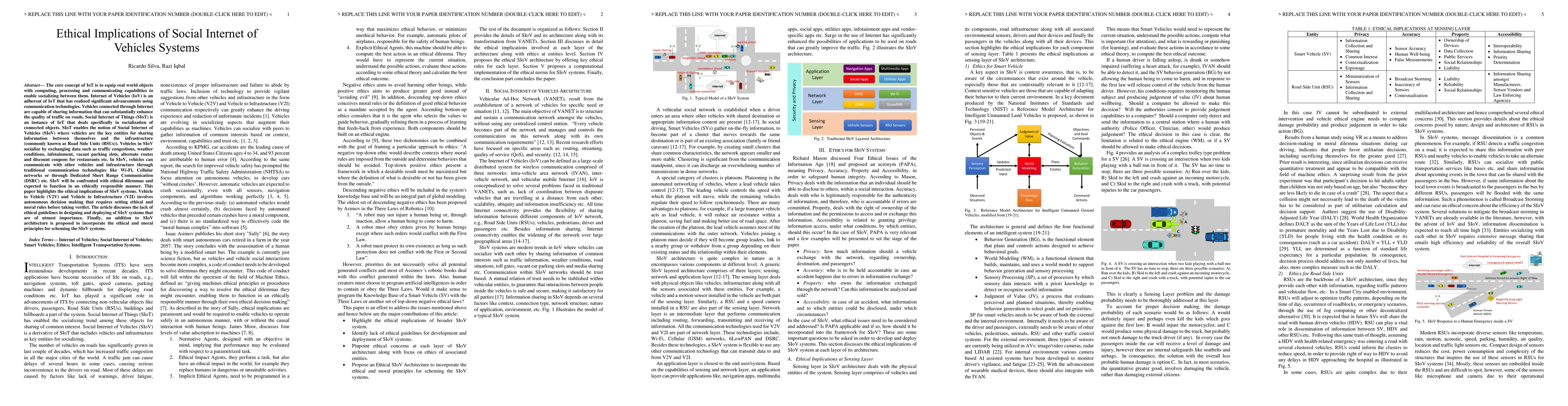 This paper explores the ethical implications of Social Internet of Vehicles (SIoV) systems, emphasizing the need for ethical guidelines in autonomous decision-making processes in Vehicle to Vehicle (V2V) and Vehicle to Infrastructure (V2I) communications. The paper proposes an enhanced SIoV architecture that incorporates ethical and moral principles to address current design and deployment deficiencies.