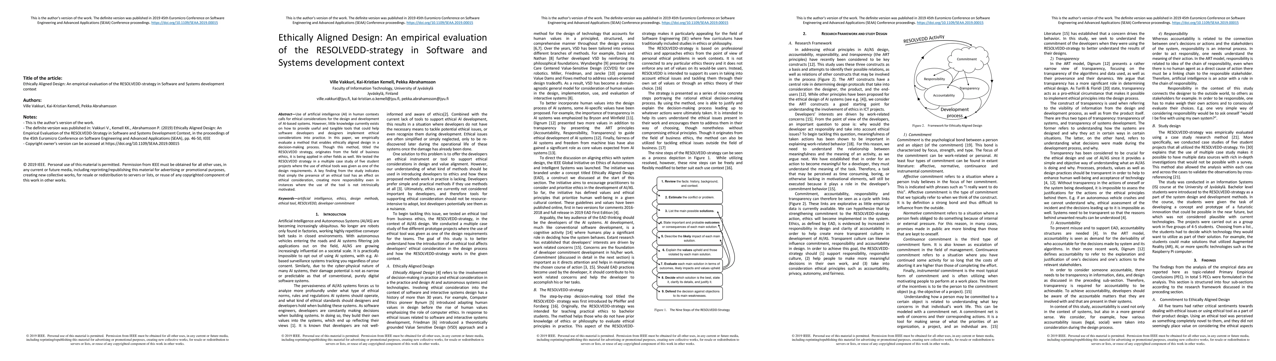 This paper empirically evaluates the RESOLVEDD-strategy for ethically aligned design in software and systems development. The study found that the presence of ethical tools, even when not intrinsically used, can enhance ethical consideration and responsibility among developers.