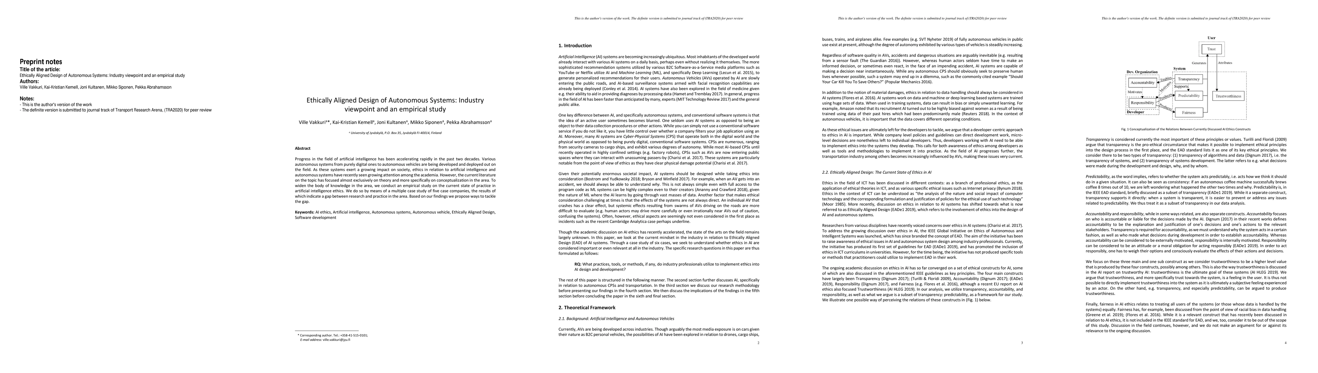 Progress in the field of artificial intelligence has been accelerating rapidly in the past two decades. Various autonomous systems from purely digital ones to autonomous vehicles are being developed and deployed out on the field. As these systems exert a growing impact on society, ethics in relation to artificial intelligence and autonomous systems have recently seen growing attention among the academia. However, the current literature on the topic has focused almost exclusively on theory and more specifically on conceptualization in the area. To widen the body of knowledge in the area, we conduct an empirical study on the current state of practice in artificial intelligence ethics. We do so by means of a multiple case study of five case companies, the results of which indicate a gap between research and practice in the area. Based on our findings we propose ways to tackle the gap.
