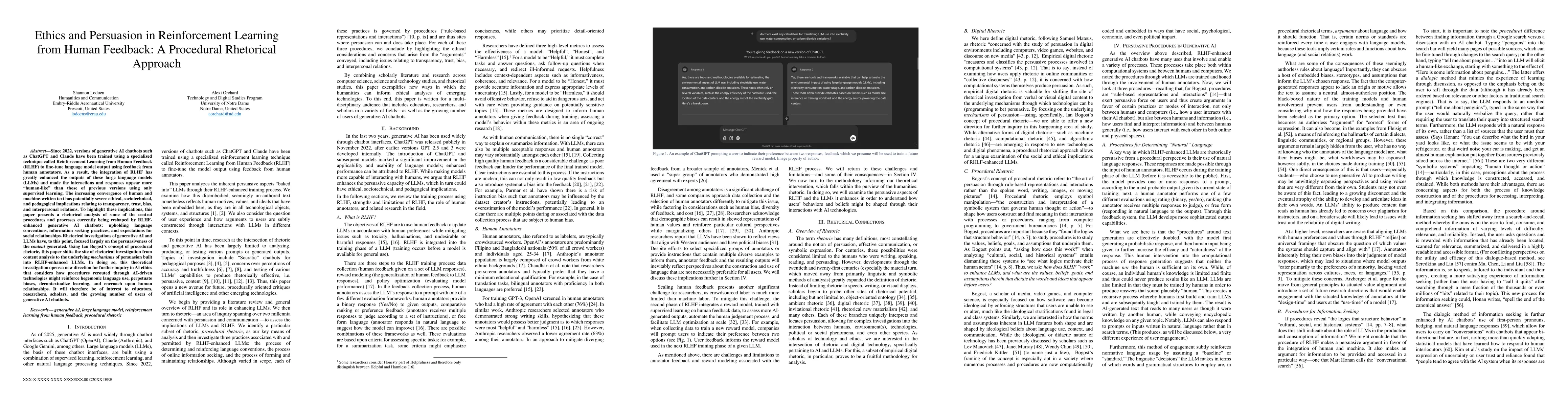 The paper introduces a novel application of procedural rhetoric to analyze the persuasive mechanisms in RLHF-enhanced LLMs, offering a fresh perspective on AI ethics.