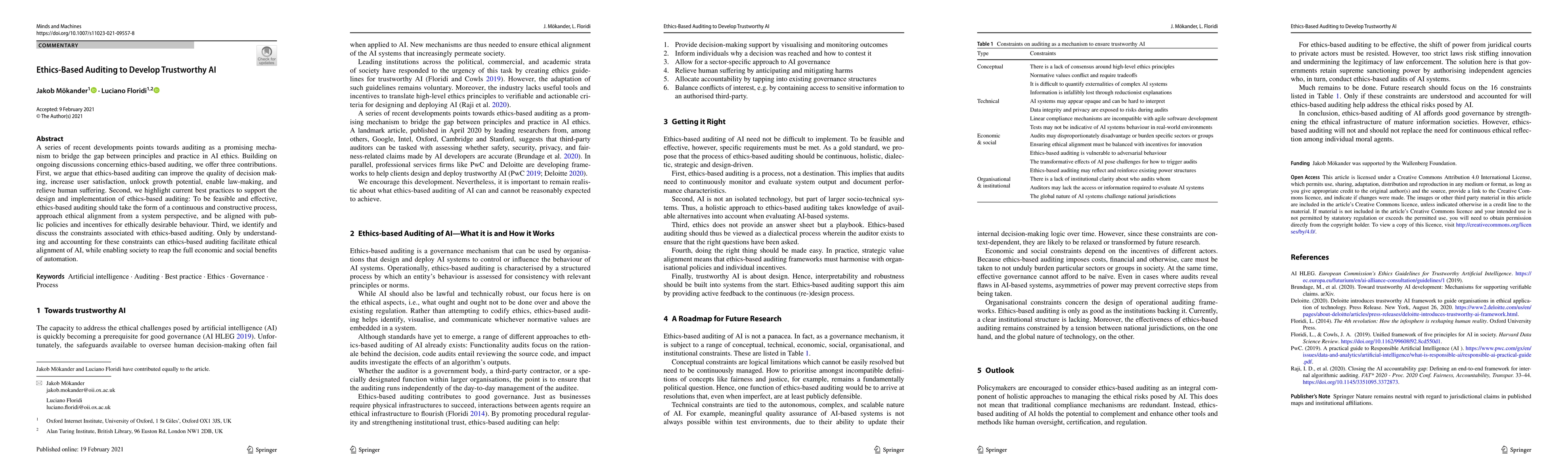 A series of recent developments points towards auditing as a promising mechanism to bridge the gap between principles and practice in AI ethics. Building on ongoing discussions concerning ethics-based auditing, we offer three contributions. First, we argue that ethics-based auditing can improve the quality of decision making, increase user satisfaction, unlock growth potential, enable law-making, and relieve human suffering. Second, we highlight current best practices to support the design and implementation of ethics-based auditing: To be feasible and effective, ethics-based auditing should take the form of a continuous and constructive process, approach ethical alignment from a system perspective, and be aligned with public policies and incentives for ethically desirable behaviour. Third, we identify and discuss the constraints associated with ethics-based auditing. Only by understanding and accounting for these constraints can ethics-based auditing facilitate ethical alignment of AI, while enabling society to reap the full economic and social benefits of automation.