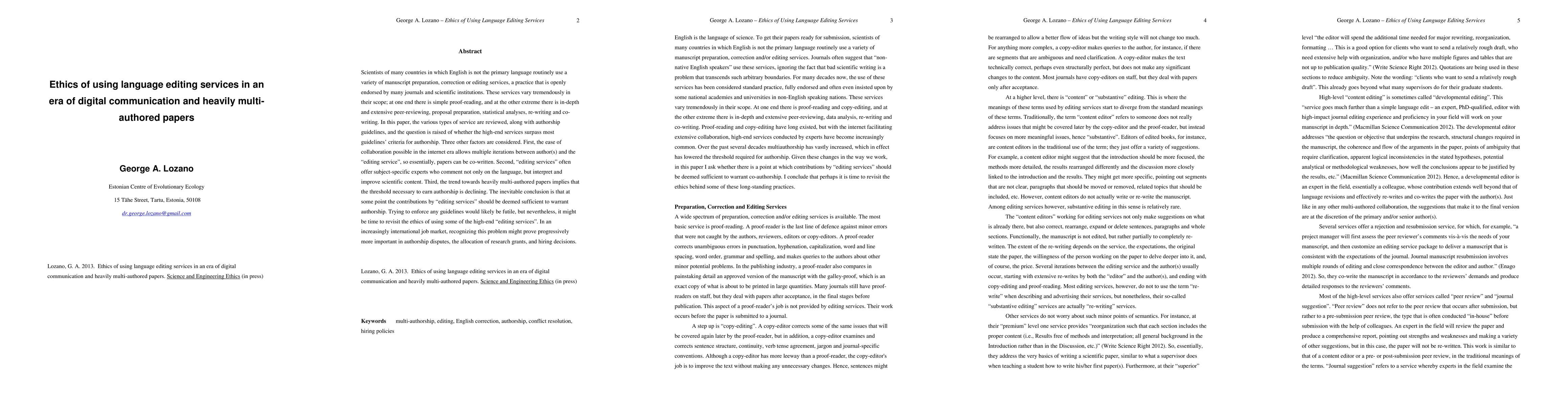 Scientists of many countries in which English is not the primary language routinely use a variety of manuscript preparation, correction or editing services, a practice that is openly endorsed by many journals and scientific institutions. These services vary tremendously in their scope; at one end there is simple proof-reading, and at the other extreme there is in-depth and extensive peer-reviewing, proposal preparation, statistical analyses, re-writing and co-writing. In this paper, the various types of service are reviewed, along with authorship guidelines, and the question is raised of whether the high-end services surpass most guidelines' criteria for authorship. Three other factors are considered. First, the ease of collaboration possible in the internet era allows multiple iterations between authors and the editing service, so essentially, papers can be co-written. Second, 'editing services' often offer subject-specific experts who comment not only on the language, but interpret and improve scientific content. Third, the trend towards heavily multi-authored papers implies that the threshold necessary to earn authorship is declining. The inevitable conclusion is that at some point the contributions by 'editing services' should be deemed sufficient to warrant authorship. Trying to enforce any guidelines would likely be futile, but nevertheless, it might be time to revisit the ethics of using some of the high-end 'editing services'. In an increasingly international job market, recognizing this problem might prove progressively more important in authorship disputes, the allocation of research grants, and hiring decisions