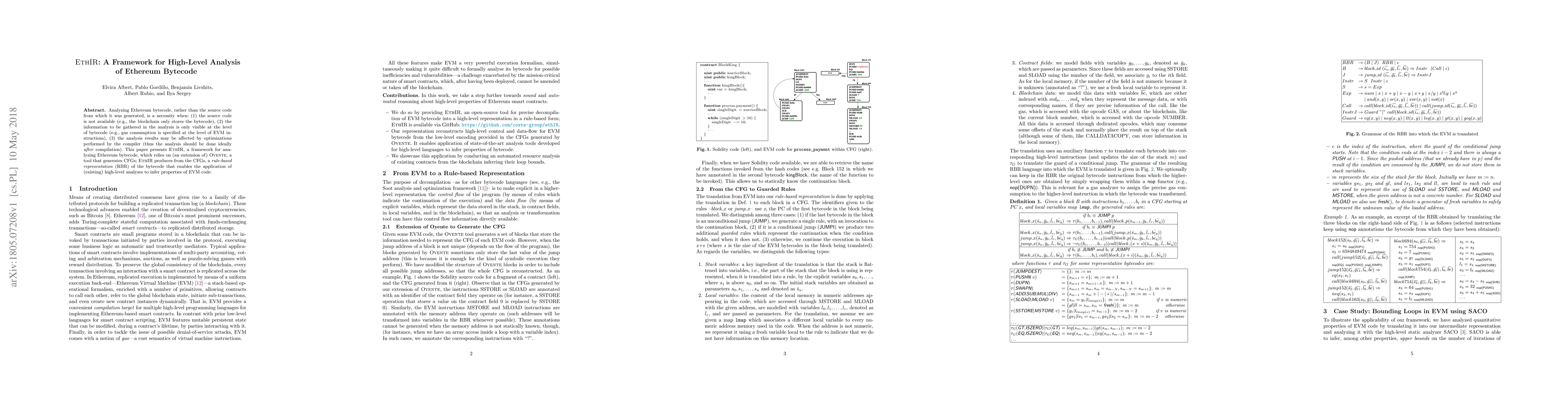 EthIR is a framework for high-level analysis of Ethereum bytecode, especially useful when source code is unavailable or when bytecode-specific information is required. It extends OYENTE to generate CFGs and produces a rule-based representation for applying high-level analyses.
