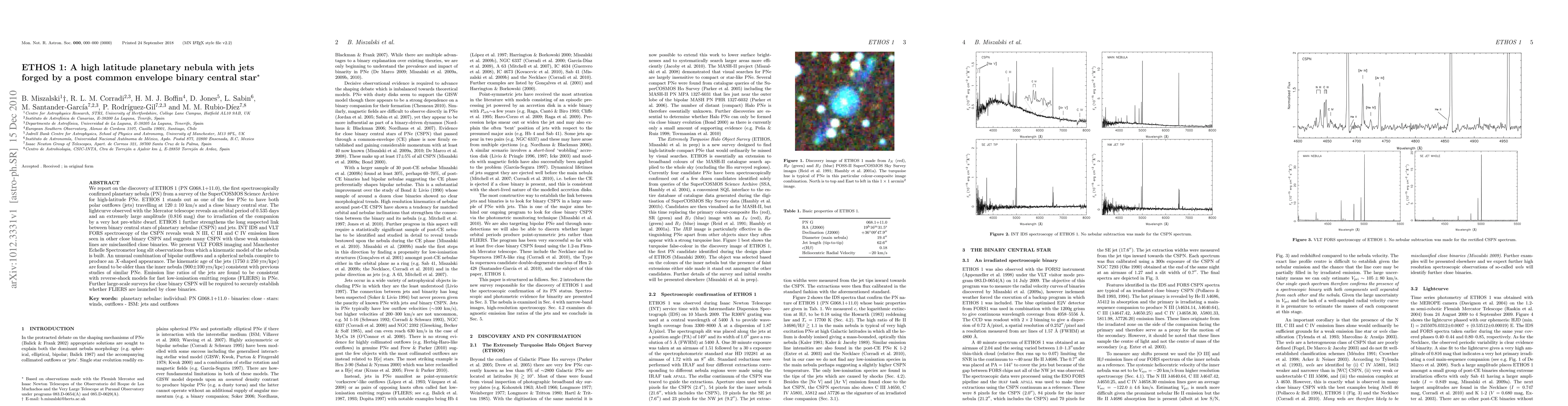 ETHOS 1 is a unique high-latitude planetary nebula with jets and a close binary central star, revealing an X-shaped structure due to bipolar outflows. The binary system's irradiation of the companion causes a large light curve amplitude, supporting the link between binary central stars and jets in planetary nebulae.