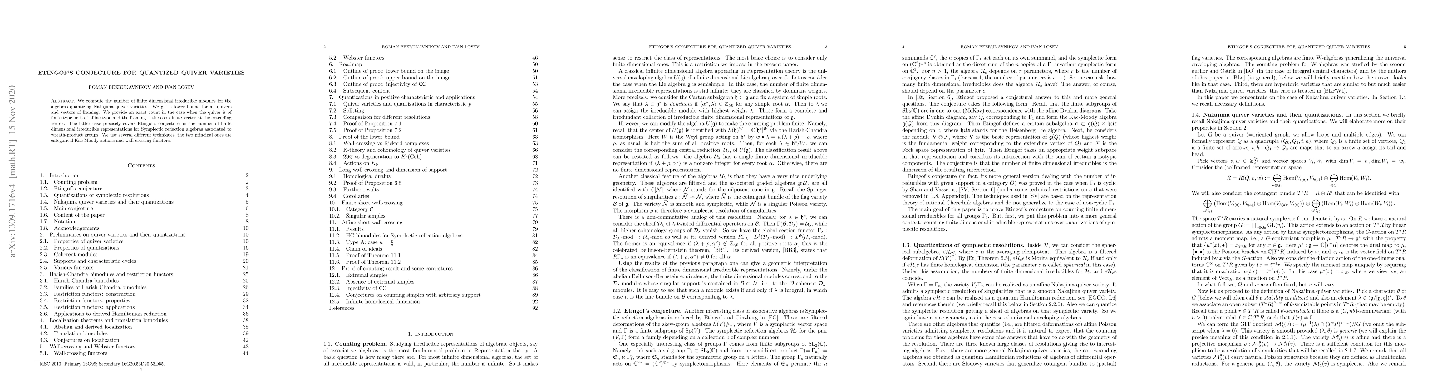 We compute the number of finite dimensional irreducible modules for the algebras quantizing Nakajima quiver varieties. We get a lower bound for all quivers and vectors of framing and provide an exact count in the case when the quiver is of finite type or is of affine type and the framing is the coordinate vector at the extending vertex. The latter case precisely covers Etingof's conjecture on the number of finite dimensional irreducible representations for Symplectic reflection algebras associated to wreath-product groups. We use several different techniques, the two principal ones are categorical Kac-Moody actions and wall-crossing functors. We finish the paper outlining some future directions of research.
