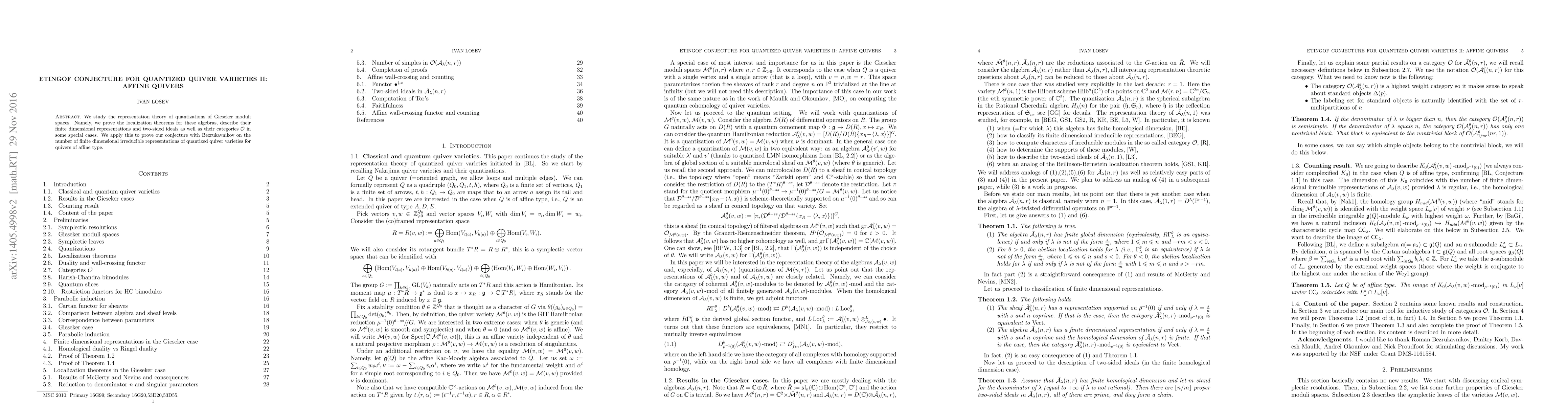 This paper proves localization theorems for quantizations of Gieseker moduli spaces and describes their finite-dimensional representations and two-sided ideals. It confirms the Etingof conjecture, co-authored with Bezrukavnikov, regarding the number of finite-dimensional irreducible representations of quantized affine quiver varieties.