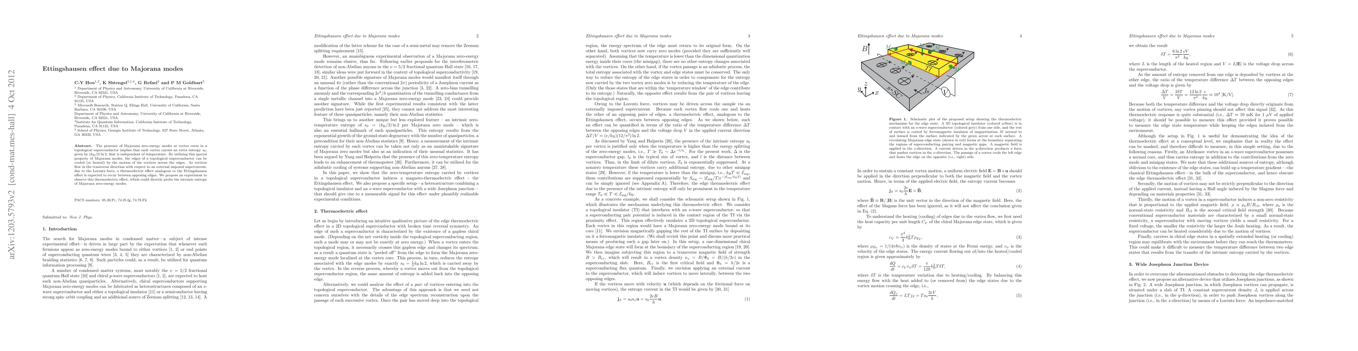 The presence of Majorana zero-energy modes at vortex cores in a topological superconductor implies that each vortex carries an extra entropy $s_0$, given by $(k_{B}/2)\ln 2$, that is independent of temperature. By utilizing this special property of Majorana modes, the edges of a topological superconductor can be cooled (or heated) by the motion of the vortices across the edges. As vortices flow in the transverse direction with respect to an external imposed supercurrent, due to the Lorentz force, a thermoelectric effect analogous to the Ettingshausen effect is expected to occur between opposing edges. We propose an experiment to observe this thermoelectric effect, which could directly probe the intrinsic entropy of Majorana zero-energy modes.