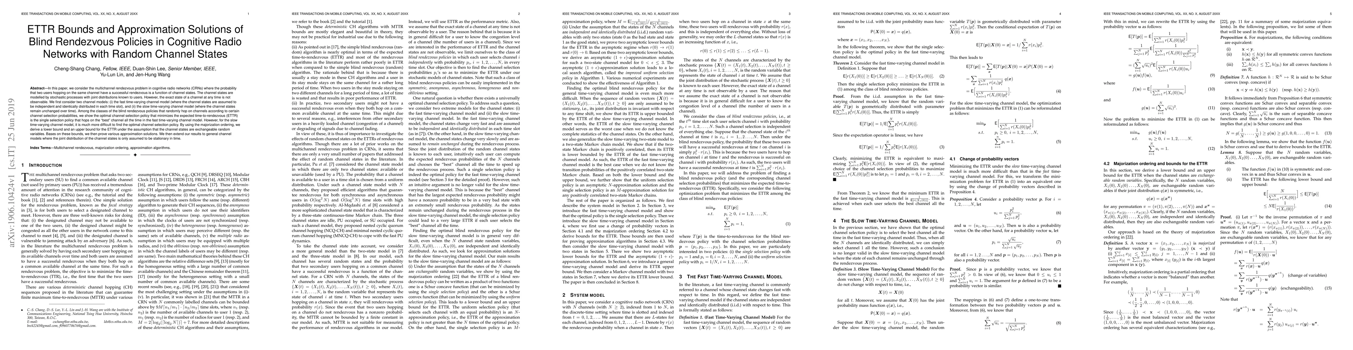 This paper investigates the multichannel rendezvous problem in cognitive radio networks under random channel states, focusing on the expected time-to-rendezvous (ETTR). It provides optimal and approximation solutions for both fast and slow time-varying channel models, deriving bounds and approximation strategies using majorization ordering for scenarios where exact channel states are unobservable.