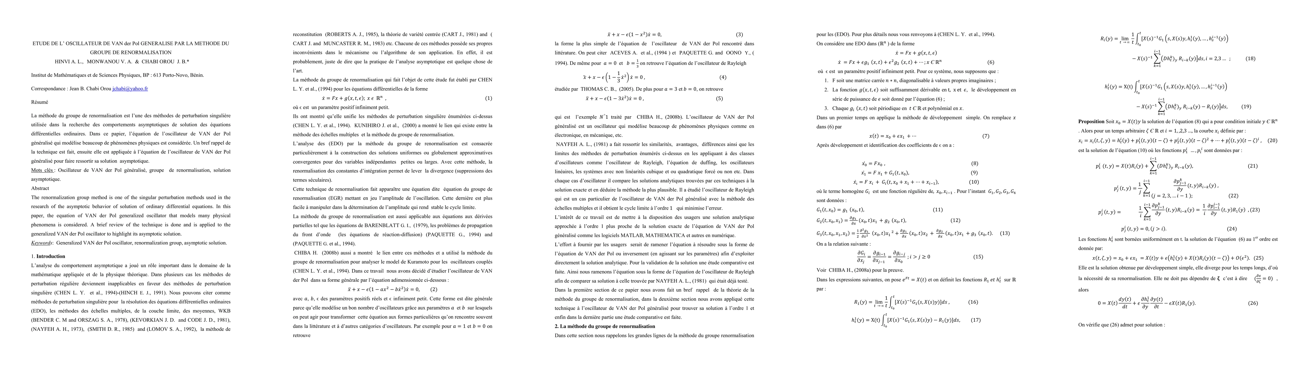 This paper applies the renormalization group method to study the generalized VAN der Pol oscillator, aiming to elucidate its asymptotic behavior and model various physical phenomena. The method provides insights into the solution's long-term dynamics.