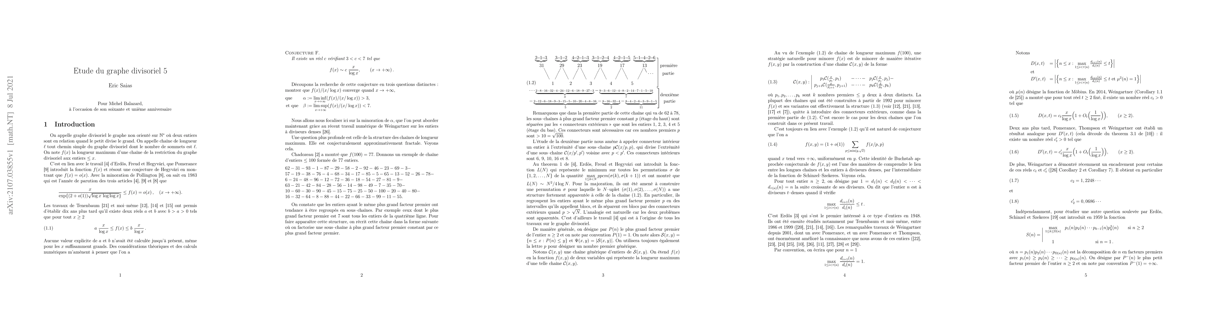 The divisor graph is the non oriented graph whose vertices are the positive integers, and edges are the {a,b} such that a divides b. Let P(n) be the largest prime factor of n, S(x,y) = {n<=x: P(n) <= y} and Psi(x,y) = Card S(x,y). Let f(x,y) be the biggest number of vertices in a simple path of the divisor graph restricted to S(x,y). We give a lower bound of f(x,y) uniformly in 2 <= y <= x which improves a result of Tenenbaum. It gives f(x) := f(x,x) >= (c + o(1)) x/logx with c = 0.3 instead of c = 0.017 in the previous result. For the little y, it implies the new formula f(x,y) = (1+o(1)) Psi(x,y), when x goes to infinity and y = o(logx). Finally we prove also a lower bound for a variant of f(x,y), which will be used in a following paper to answer a question of Erd\"os.