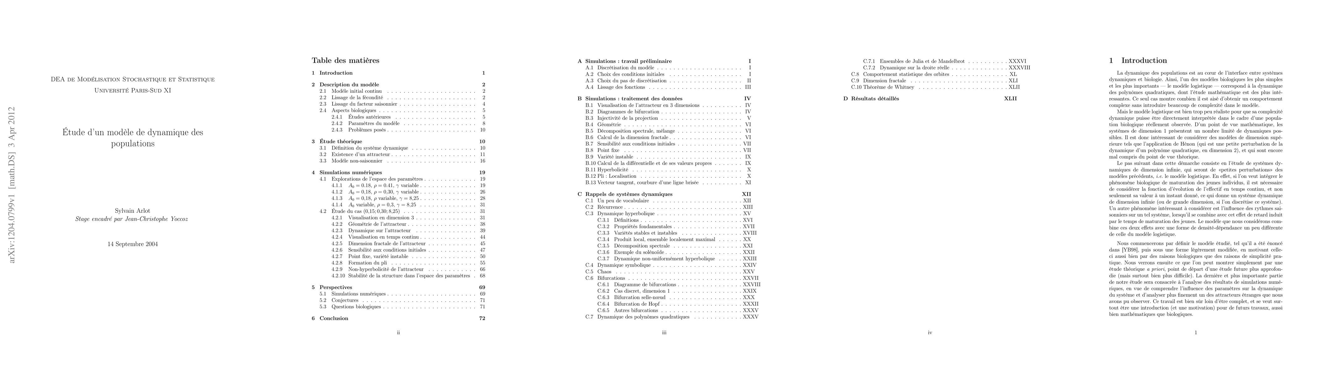 We study an infinite dimensional dynamical system that was proposed by J.C. Yoccoz and N.G. Yoccoz for modeling the population dynamics of some small rodents. We show an attractor exist in a large domain of the parameter space. Thanks to simulations, we describe the possible dynamics of the system, in particular some Henon-type strange attractors, but also a new kind of attractor. We study the complexity of the new attractor and the reasons causing it, from both geometrical and dynamical points of view. Thus, we show a chaotic behaviour can be obtained in a population dynamics model with a strong density-dependence and some delay, but without seasonal variations over years.