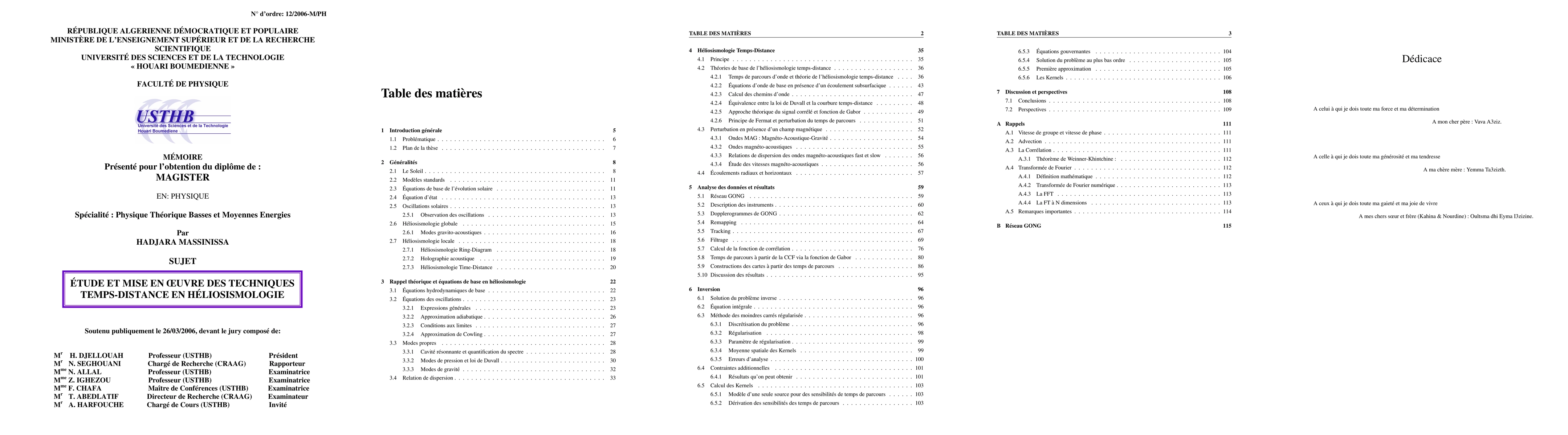 In the same way that seismologists study the interior of the earth from the waves generated by earthquakes, heliosismology is the science that is interested in the study of oscillatory waves inside the Sun. Temperature, chemical composition, rotational velocities at different depths are all factors that influence the oscillation frequencies of the waves trapped inside the Sun. The observation and measurement of the frequencies (or velocities) of oscillations of the principal modes on the surface of the Sun allow us to study the internal properties of the star. In our study, we use a local helioseismic method, called "Time-Distance"; the latter, after appropriate treatment (remapping, tracking, and filtering) of the data, which carried out from the GONG (Global Oscillation Network Group) observation network, allows us to deduce, by correlation of the observed signals, the relationship between the time of the wave path and its crossed distance (hence the name of the method) between different points on the surface as a function of the different solar sub-surface parameters, via the dispersion relation. Once the travel times have been established by approximation of the correlation function by a Gaussian wave packet and based on the Fermat principle dealing with acoustic waves, we find the relationship between these times and the internal parameters of the crossed medium. Two models are considered in this study. The first does not include the effects of the magnetic field and takes into account the flow velocity and the sound speed. The second, on the other hand, includes the magnetic effects, by means of the Alfven velocity (magnetic field perturbation velocity), in addition to the parameters mentioned above. The last part of this paper was devoted to the inversion of the obtained times, which allows us to go back to the solar internal parameters.