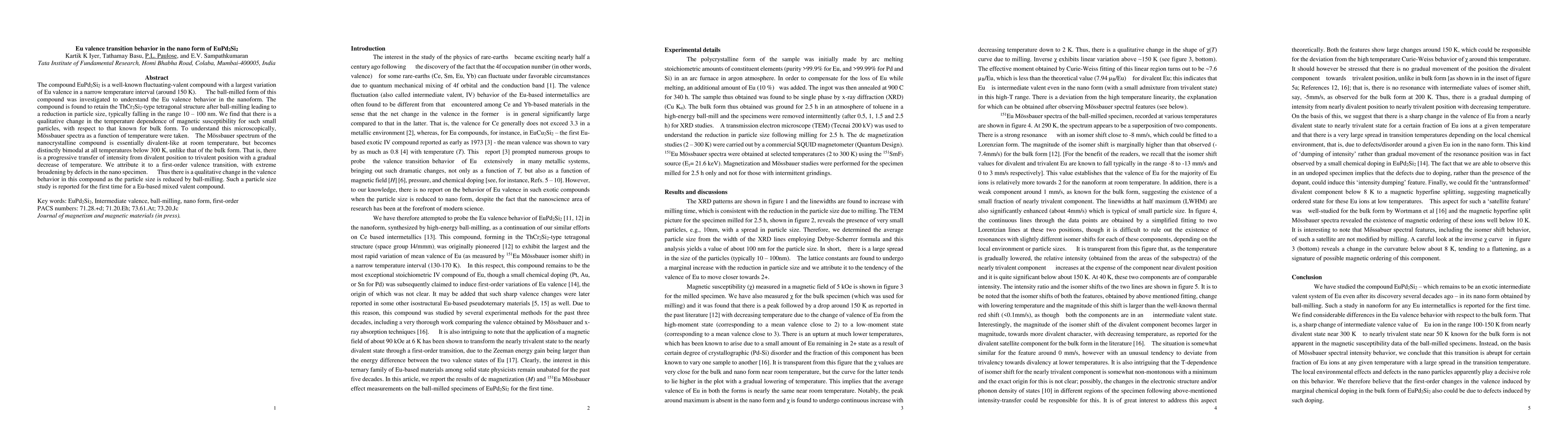 Researchers investigated the valence behavior of EuPd2Si2 in its nano form after ball-milling, finding a qualitative change in temperature dependence of magnetic susceptibility and a first-order valence transition with broadening due to defects.