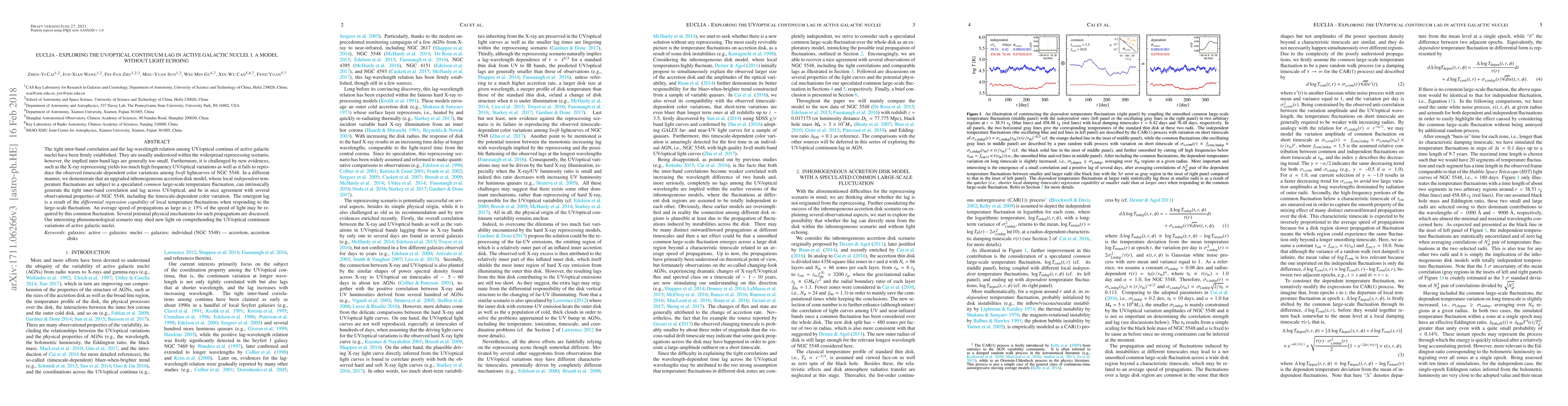 This paper proposes a new model to explain the UV/optical continuum lag in active galactic nuclei without relying on light echoing. It suggests an inhomogeneous accretion disk model where local temperature fluctuations respond to a common large-scale fluctuation, generating the observed inter-band correlation and lag without the need for reprocessing.
