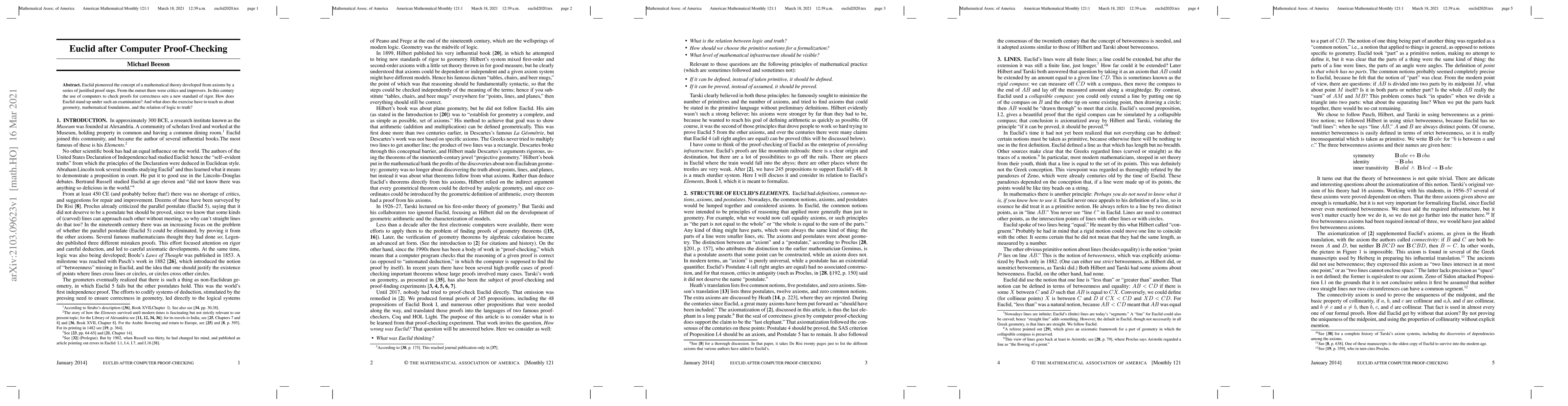 This paper examines how Euclid's geometric proofs hold up under modern computer verification, exploring the implications for mathematical rigor, foundational principles, and the relationship between logic and truth in geometry. The study highlights the evolving standards of proof and the insights gained from integrating computational methods.