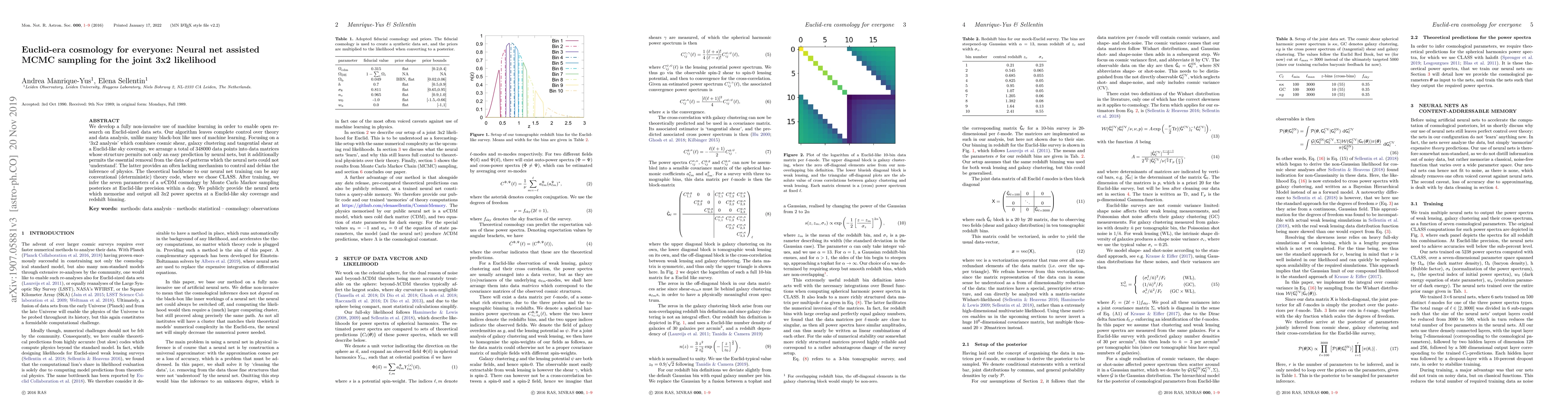 We develop a fully non-invasive use of machine learning in order to enable open research on Euclid-sized data sets. Our algorithm leaves complete control over theory and data analysis, unlike many black-box like uses of machine learning. Focusing on a `3x2 analysis' which combines cosmic shear, galaxy clustering and tangential shear at a Euclid-like sky coverage, we arrange a total of 348000 data points into data matrices whose structure permits not only an easy prediction by neural nets, but it additionally permits the essential removal from the data of patterns which the neural nets could not `understand'. The latter provides an often lacking mechanism to control and debias the inference of physics. The theoretical backbone to our neural net training can be any conventional (deterministic) theory code, where we chose CLASS. After training, we infer the seven parameters of a $w$CDM cosmology by Monte Carlo Markov sampling posteriors at Euclid-like precision within a day. We publicly provide the neural nets which memorise and output all 3x2 power spectra at a Euclid-like sky coverage and redshift binning.