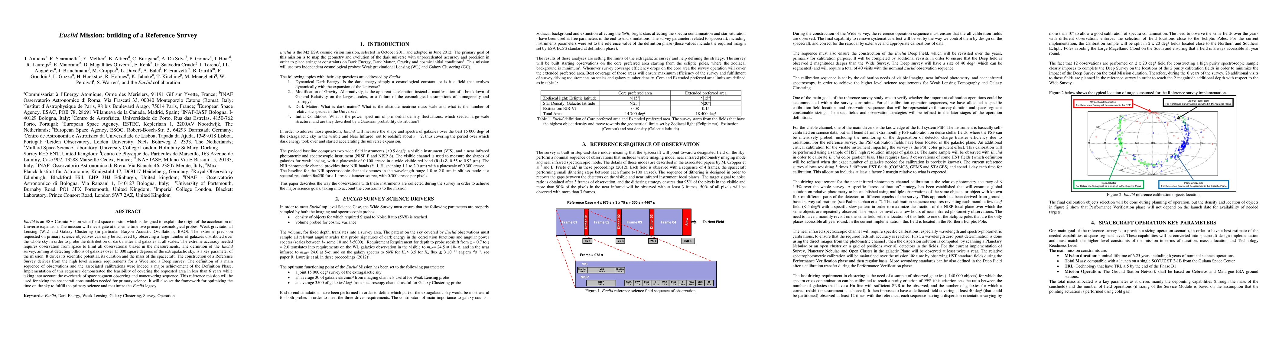 The Euclid mission, an ESA space observatory, aims to investigate the universe's accelerated expansion through Weak Gravitational Lensing and Galaxy Clustering, specifically Baryon Acoustic Oscillations. A Reference Survey is being constructed to meet the high precision science requirements, enabling the detection of billions of galaxies over 15,000 square degrees of the sky to map dark matter and galaxy distributions.