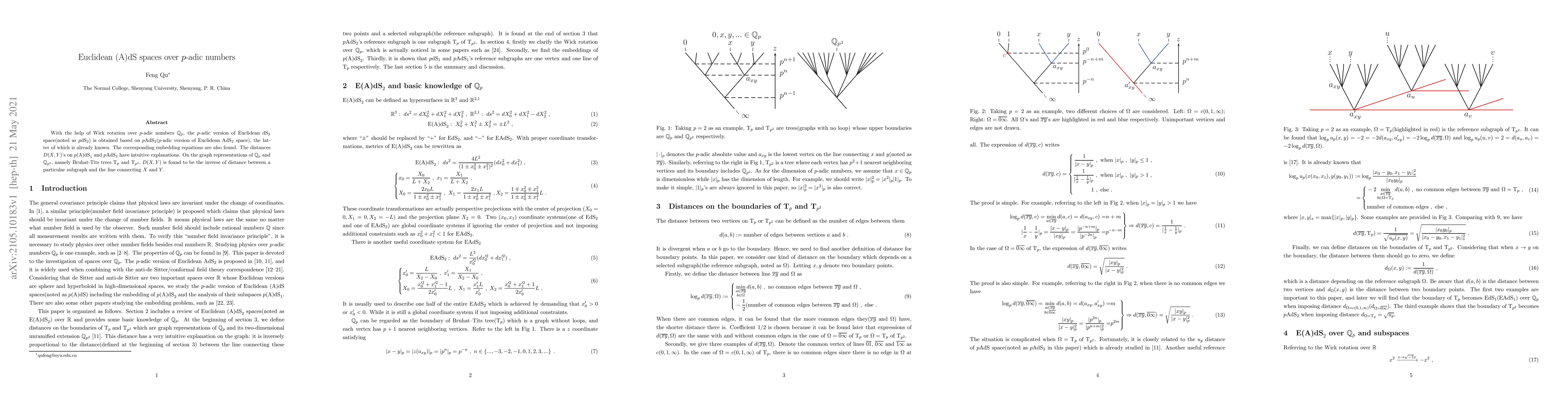This paper constructs a $p$-adic version of Euclidean dS₂ space via Wick rotation over $p$-adic numbers $\mathbb{Q}_p$, based on the $p$-adic AdS₂ space. It also provides embedding equations and explains distances on $p\textrm{(A)dS}_1$ and $p\textrm{AdS}_2$ using graph representations of $\mathbb{Q}_p$ and $\mathbb{Q}_{p^2}$.