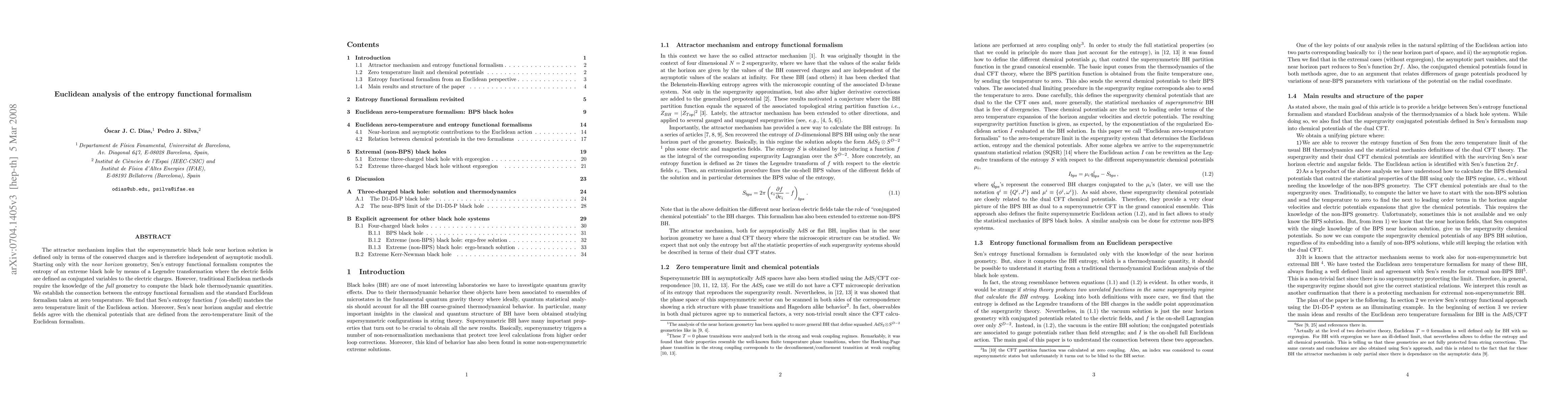 The attractor mechanism implies that the supersymmetric black hole near horizon solution is defined only in terms of the conserved charges and is therefore independent of asymptotic moduli. Starting only with the near horizon geometry, Sen's entropy functional formalism computes the entropy of an extreme black hole by means of a Legendre transformation where the electric fields are defined as conjugated variables to the electric charges. However, traditional Euclidean methods require the knowledge of the full geometry to compute the black hole thermodynamic quantities. We establish the connection between the entropy functional formalism and the standard Euclidean formalism taken at zero temperature. We find that Sen's entropy function 'f' (on-shell) matches the zero temperature limit of the Euclidean action. Moreover, Sen's near horizon angular and electric fields agree with the chemical potentials that are defined from the zero-temperature limit of the Euclidean formalism.