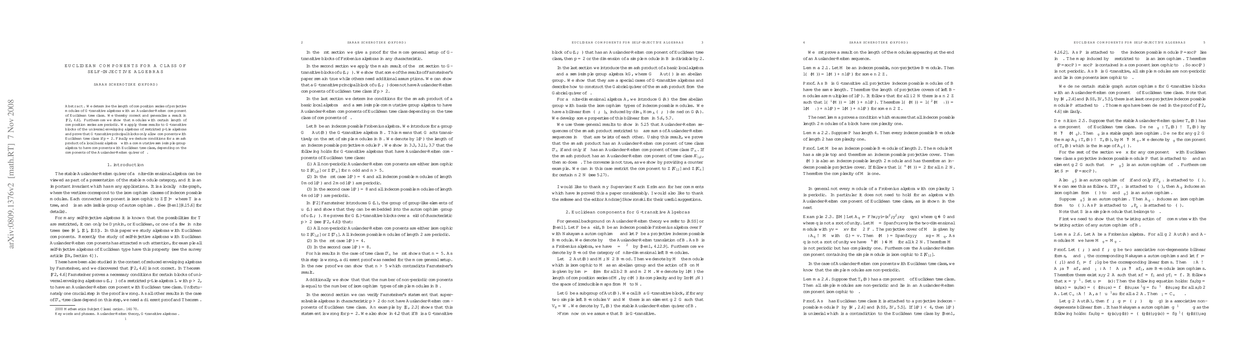 We determine the length of composition series of projective modules of G-transitive algebras with an Auslander-Reiten component of Euclidean tree class. Furthermore we show that modules with certain length of composition series are periodic. We apply these results to G-transitive blocks of the Universal enveloping of restricted p-Lie algebras and prove that G-transitive principal blocks only allow components with Euclidean tree class if p=2. Finally we deduce conditions for a smash product of a local basic algebra with a commutative semi-simple group algebra to have components with Euclidean tree class, depending on the components of the Auslander-Reiten quiver of the basic algebra. We also develop some properties of the bilinear form dim Hom_A(-,-) for the representation ring G(A) of any finite-dimensional algebra A.