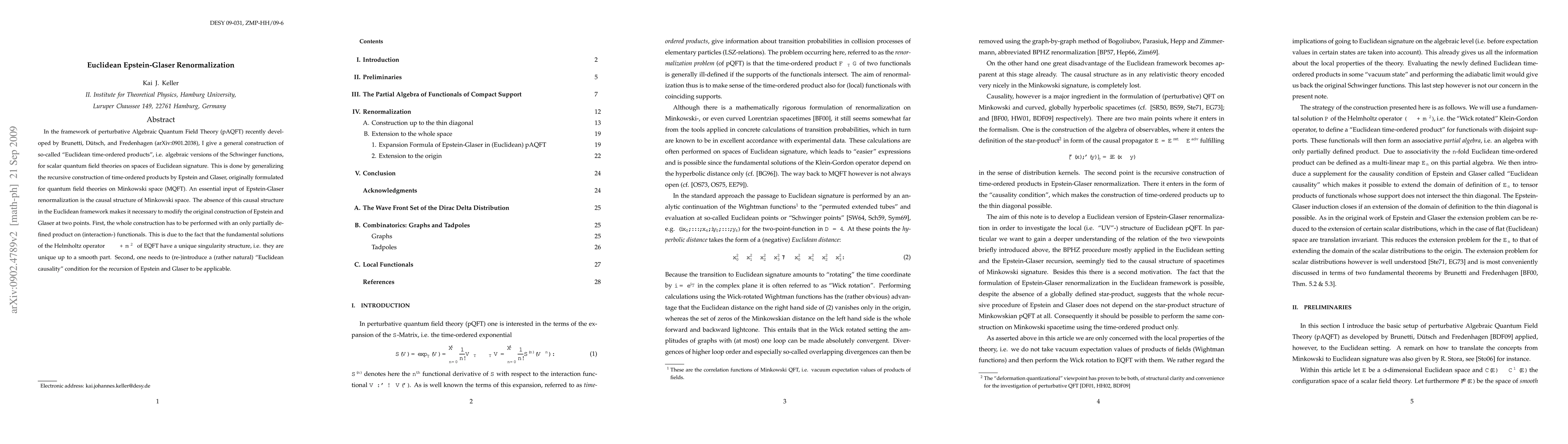 This paper develops Euclidean time-ordered products for scalar quantum field theories using a modified Epstein-Glaser renormalization framework, addressing the lack of causal structure in Euclidean space by introducing a "Euclidean causality" condition and adapting the recursive construction for partially defined functional products.