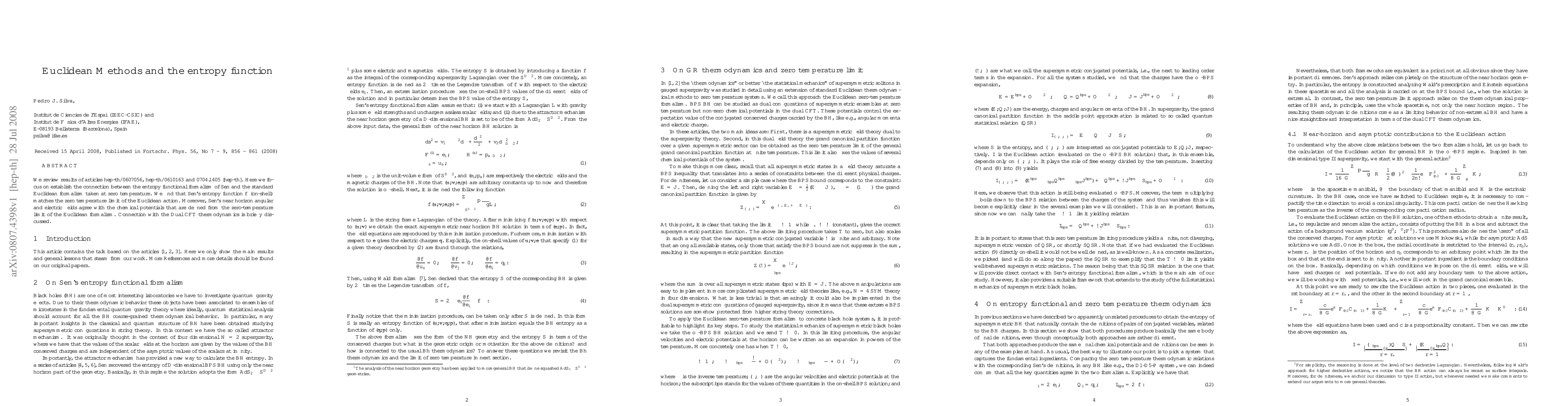 This paper establishes a connection between Sen's entropy functional formalism and the standard Euclidean formalism at zero temperature, showing that Sen's on-shell entropy function matches the zero-temperature limit of the Euclidean action. It also aligns Sen's near horizon fields with chemical potentials from the Euclidean formalism, briefly touching on dual CFT thermodynamics.