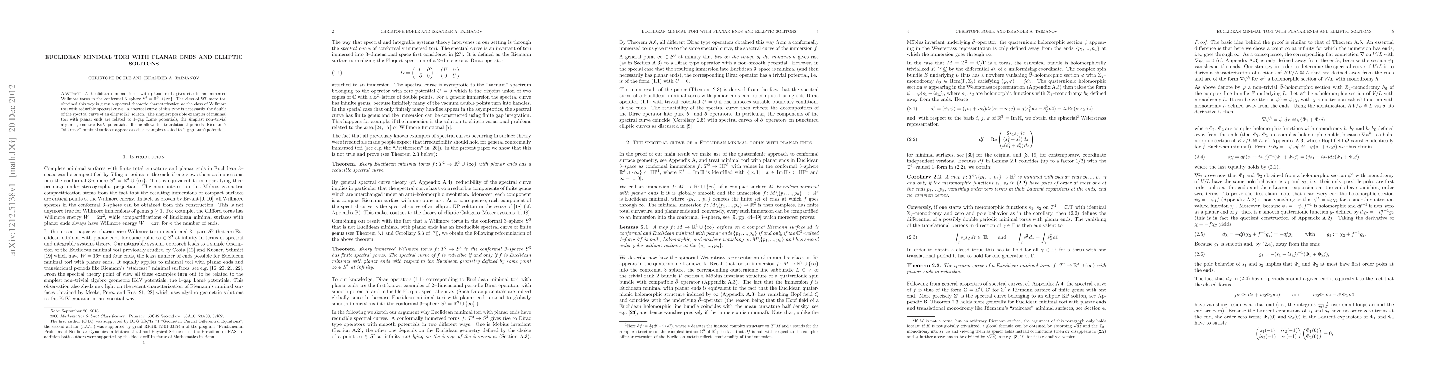 Research finds that Euclidean minimal tori with planar ends create Willmore tori with a specific spectral curve, related to elliptic KP solitons, providing insight into the structure of these mathematical objects.