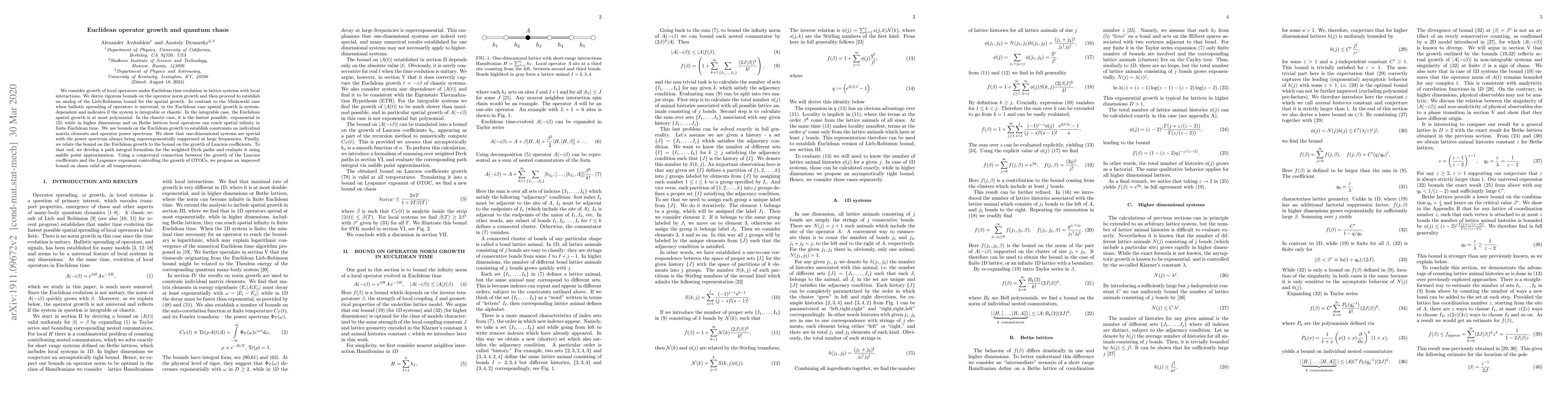 This paper investigates the growth of local operators under Euclidean time evolution in lattice systems, establishing rigorous bounds on operator norm growth and spatial growth. It reveals that spatial growth in the Euclidean case is system-dependent, distinguishing between integrable and chaotic systems, with exponential growth in chaotic systems.